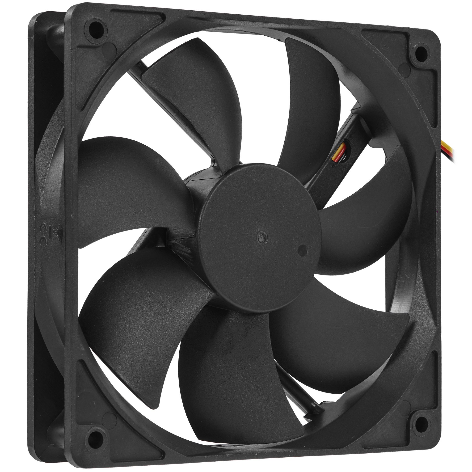Черный вентилятор 5Bites [FB12025S-12L3] обладает оптимальными для корпусов ПК стандартного и увеличенного форм-фактора размерами 12x12 см с толщиной 2.5 см. Кулер оснащен простым по конструкции подшипником скольжения. Устройство выдерживает работу с напряжением 12 В и предельным током питания 120 мА.