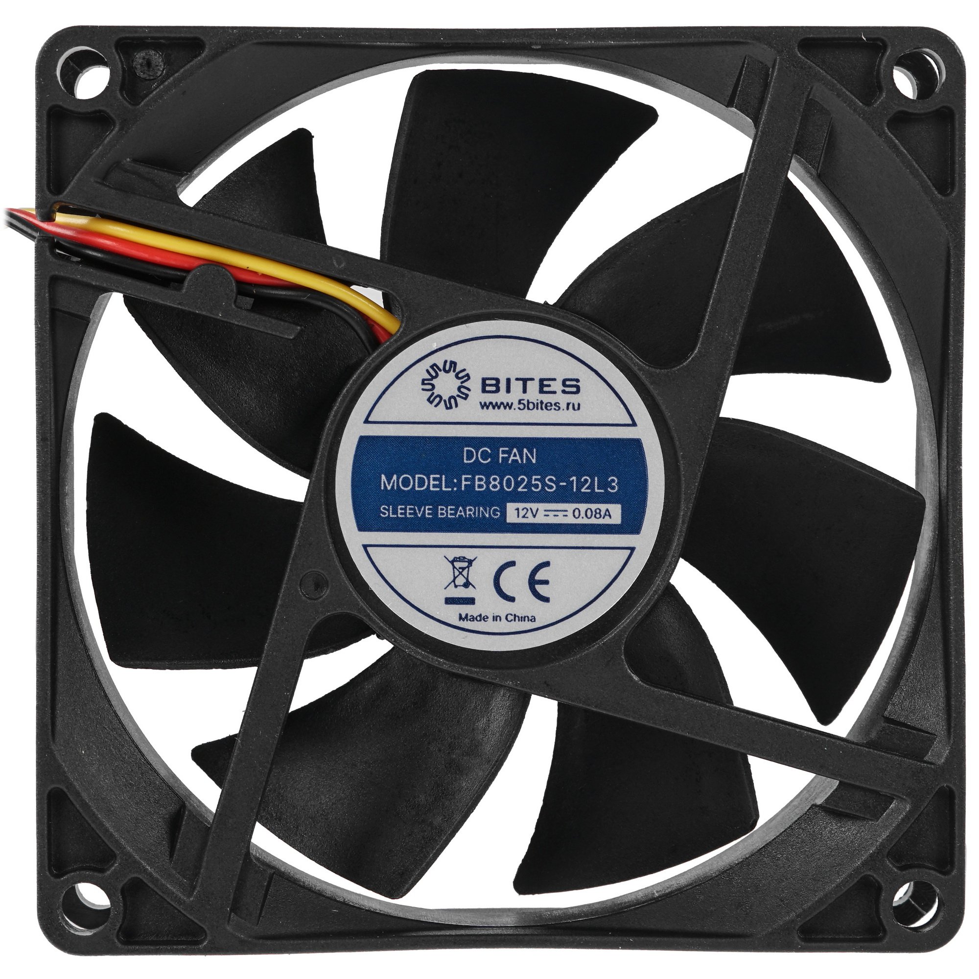 Вентилятор для корпуса 5bites FB8025S-12L3 черный, 80 x 80 мм, 2000 об/мин, 22 дБ, 3 pin