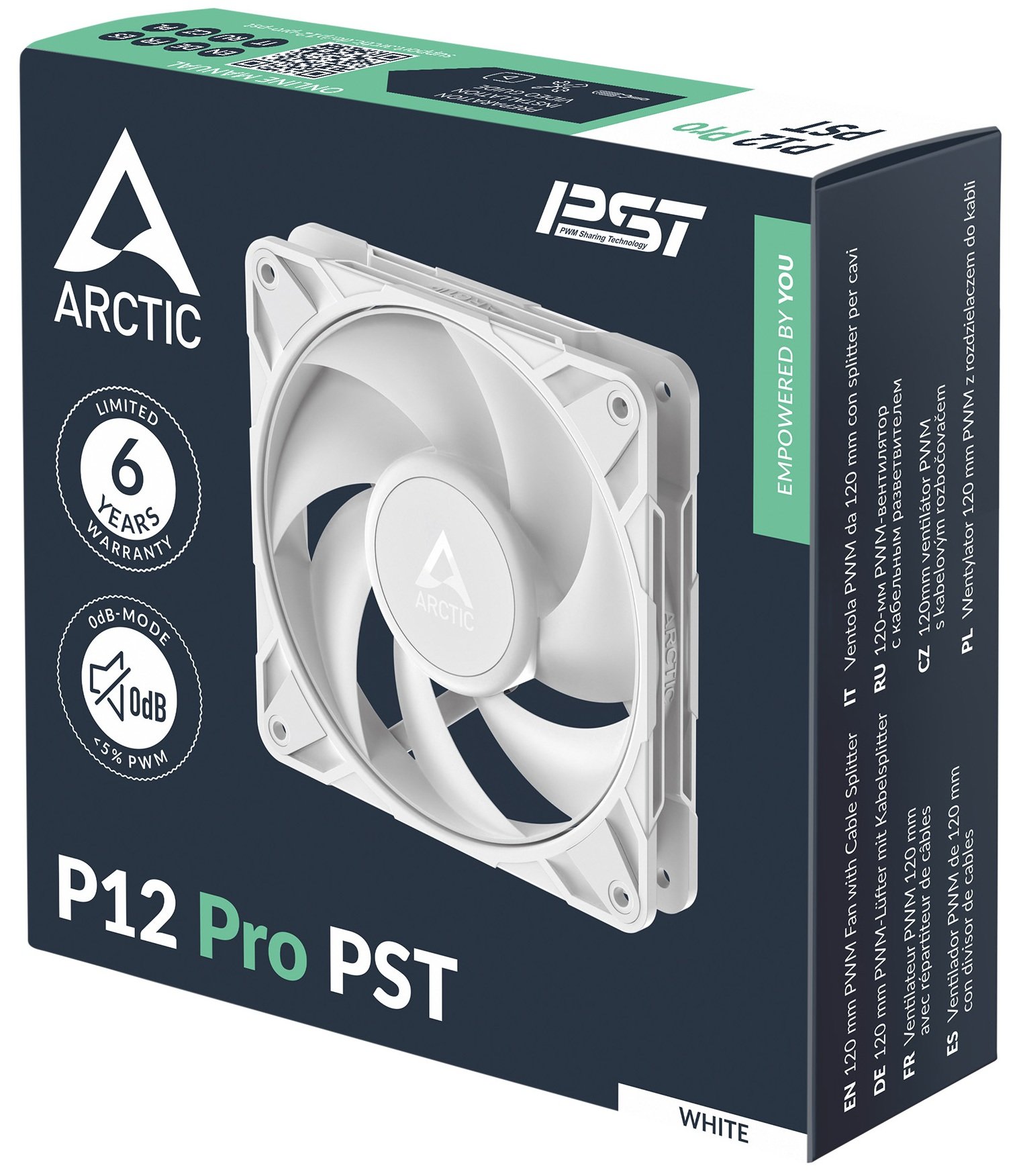 Вентилятор ARCTIC P12 Pro PST обеспечивает большую производительность на низких скоростях с более высоким потоком воздуха и статическим давлением всего 25 дБ(А) — идеально для бесшумного, мощного охлаждения.