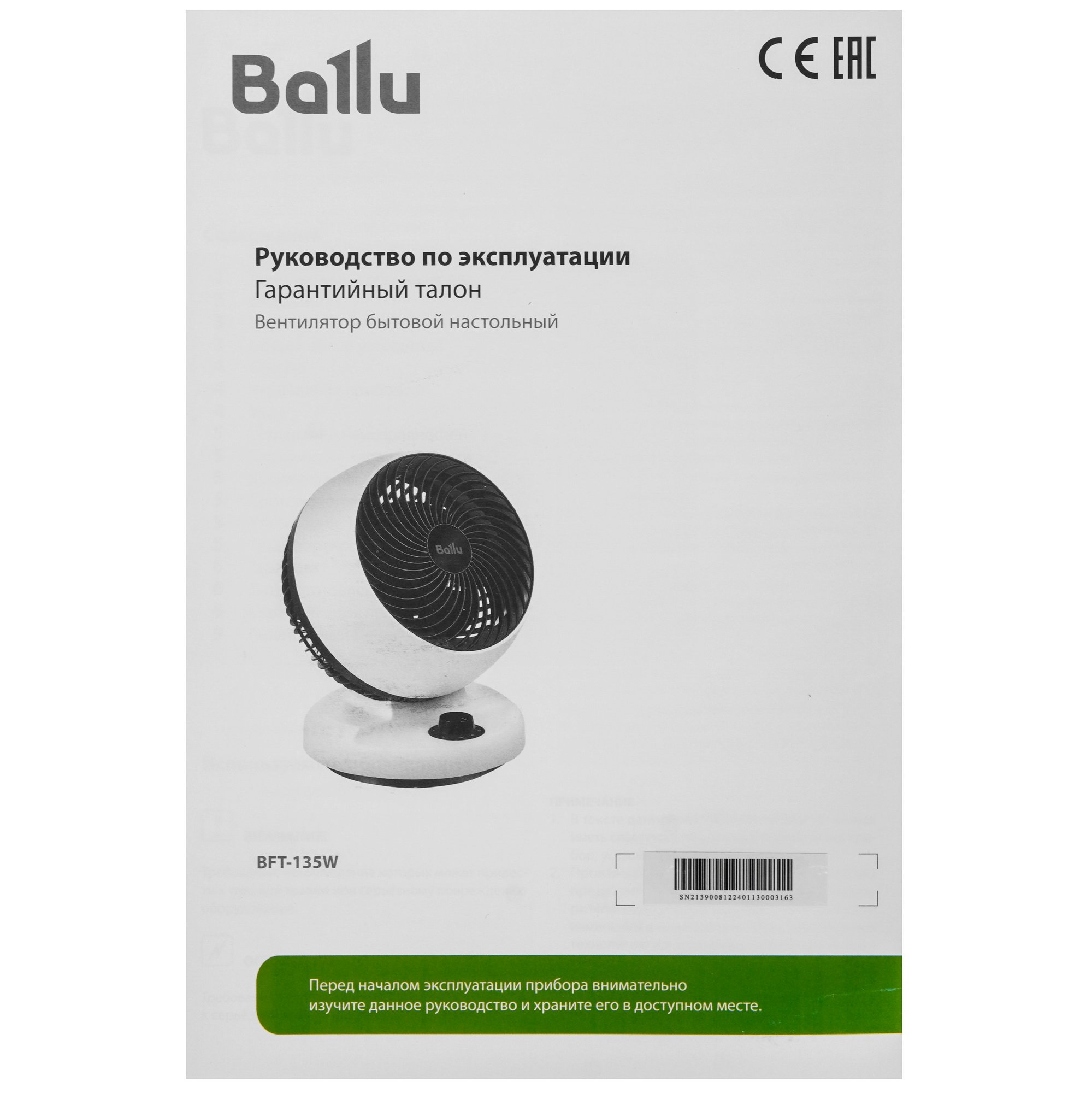 Вентилятор настольный Ballu BFT-135W