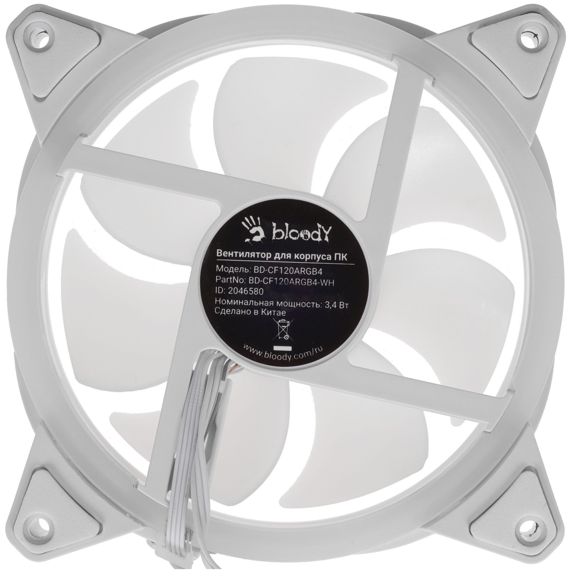 Вентилятор для корпуса Bloody BD-CF120ARGb4 ARGb белый, 120 мм, 1600 об/мин, 26 дБ, 4 pin
