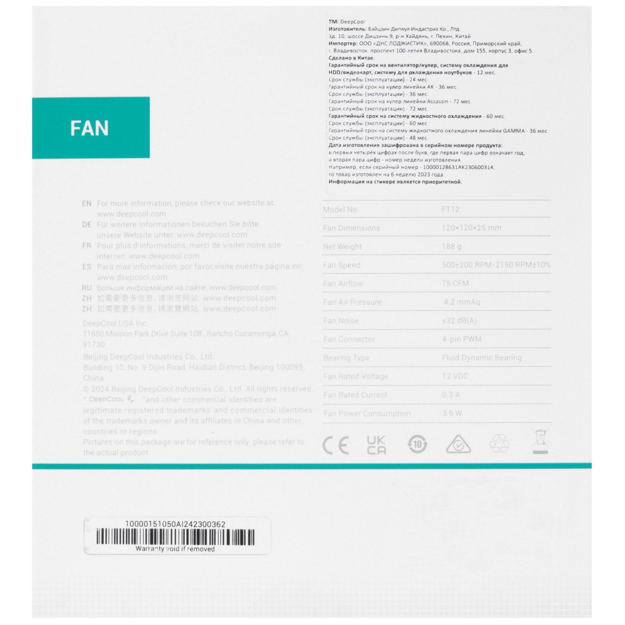Вентилятор DEEPCOOL 120x120 FT12 представляет собой высокопроизводительное охлаждающее устройство, разработанное для обеспечения эффективного воздушного потока и низкого уровня шума. Этот вентилятор имеет диапазон скорости вращения от 500 до 2150 оборотов в минуту, что позволяет ему адаптироваться к различным условиям охлаждения. Благодаря использованию подшипников с жидкостной динамикой, вентилятор обеспечивает долговечность и надежность работы. Максимальный воздушный поток составляет 75 кубических футов в минуту (CFM), а статическое давление достигает 4.2 мм водяного столба, что делает его идеальным для установки в корпусах с плотным расположением компонентов.
