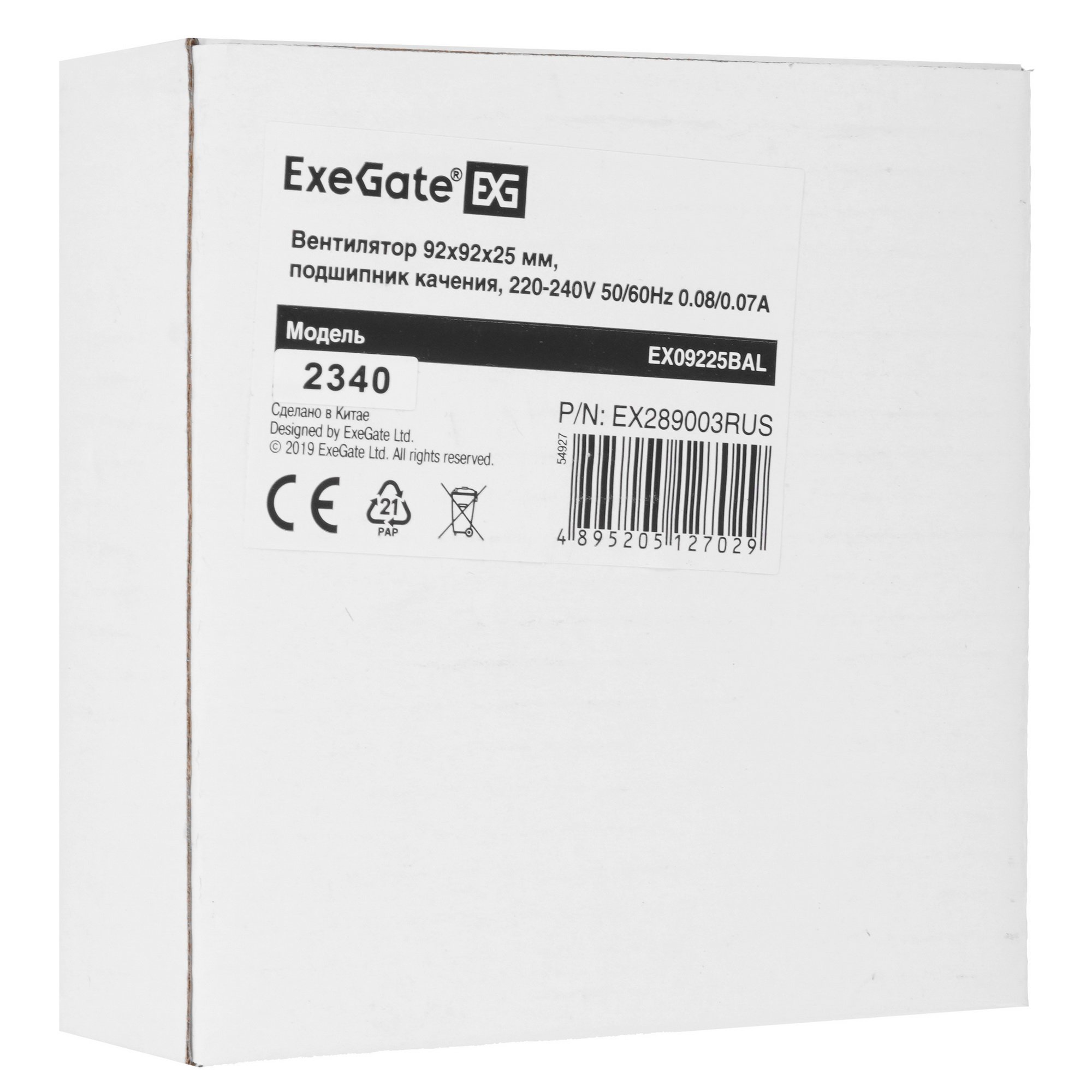 Вентилятор для корпуса ExeGate EX09225BAL черный, 92 мм, 2500 об/мин, 32 дБ