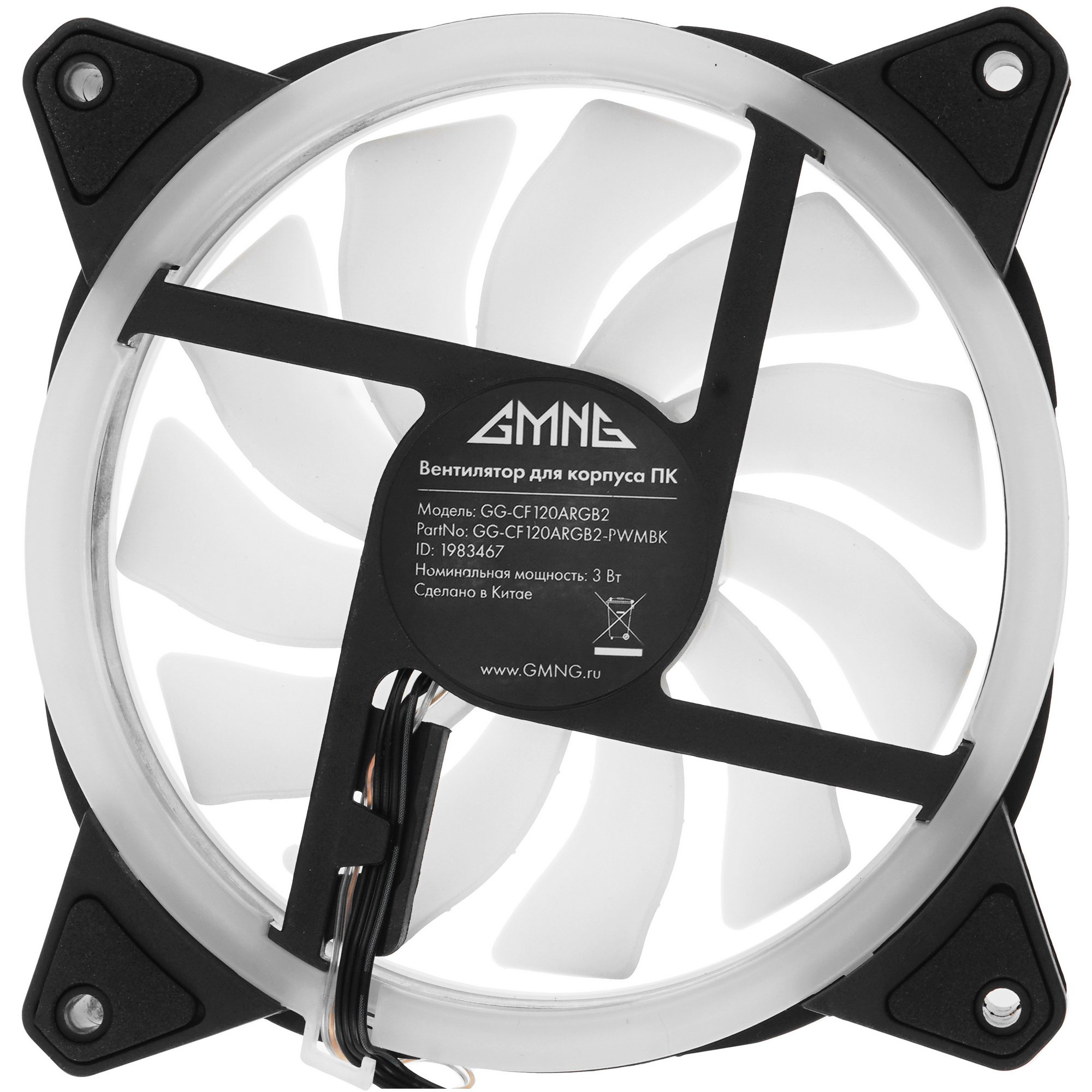 Вентилятор для корпуса GMNG GG-CF120ARGb2-PWMBK черный, 120 мм, 1500 об/мин, 26 дБ, 4 pin