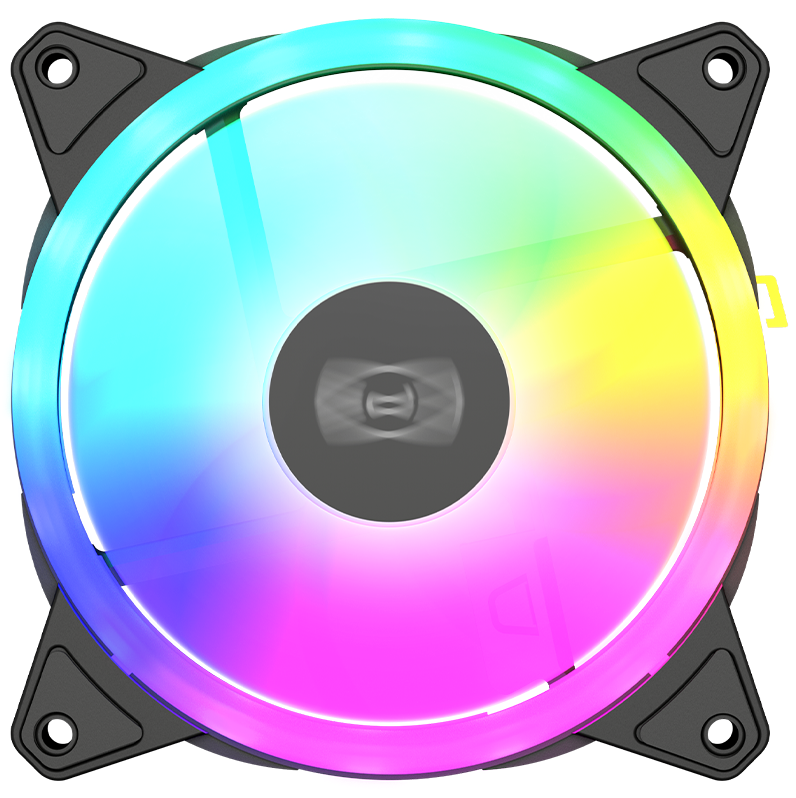 Вентилятор PCCooler F3 T120 ARGB размерами 120x120 мм подключается к плате через разъем4 pin. Модель оснащена 9 лопастями со специальными проекциями. Они вращаются со скоростью до 1800 об/мин, создавая ощутимый поток воздуха. Это обеспечивает высокую эффективность охлаждения внутренних компонентов системы. На вентиляторе расположены элементы управляемой ARGB-подсветки. Цвета в палитре RGB смешиваются, создавая разноцветное свечение.