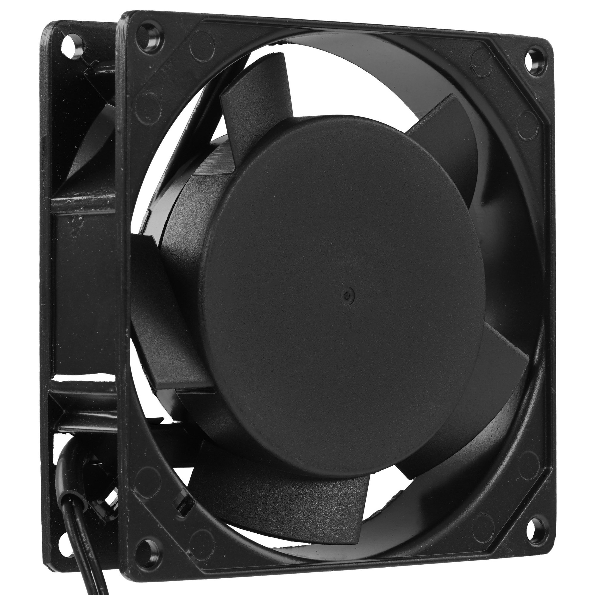 Вентилятор Rexant RX 9225HS 220VAC [72-6090] вращается с частотой до 2400 об/мин. Максимальный уровень шума устройства составляет 33 дБ. Предельный воздушный поток вентилятора равен 34 CFM.