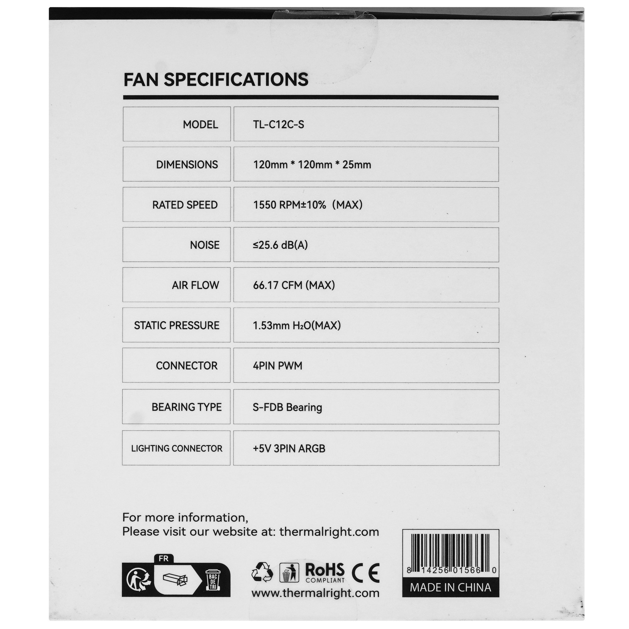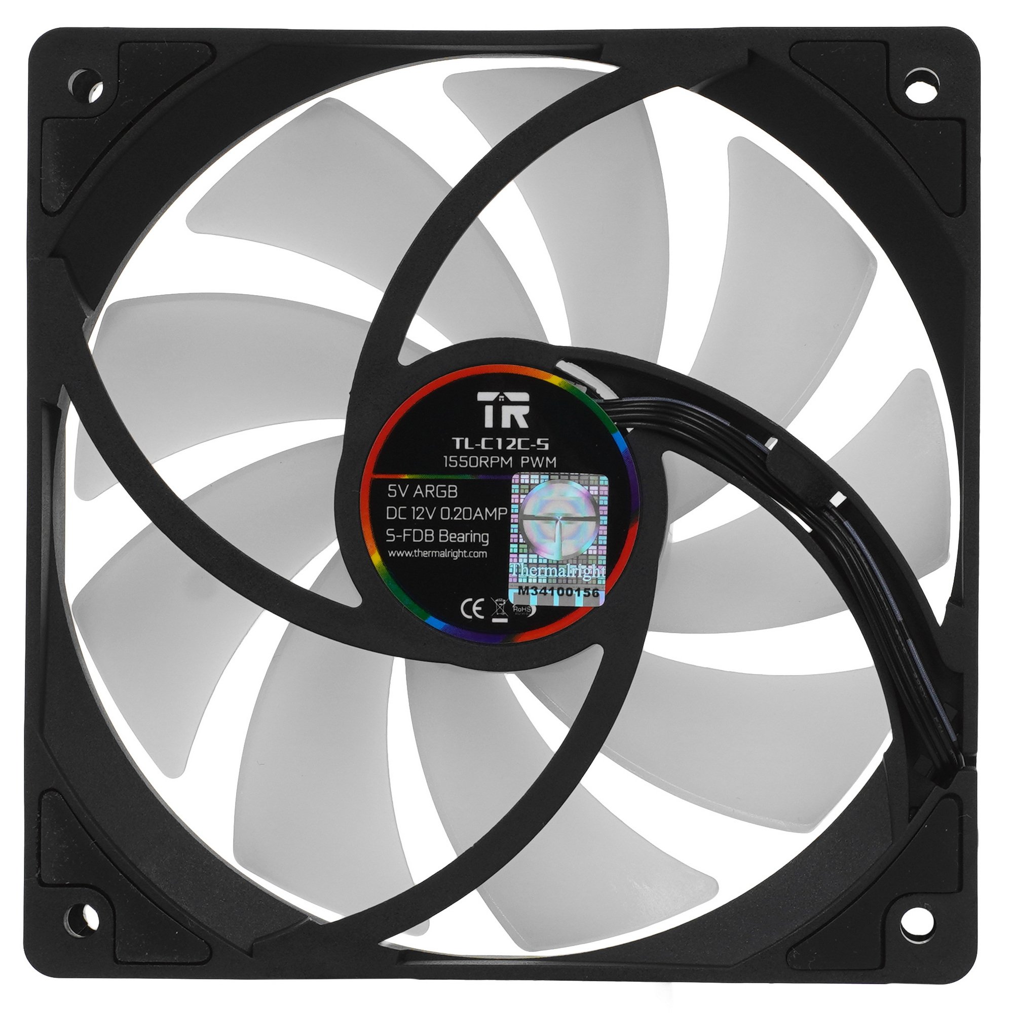 Кулер для корпуса Thermaltight TL-C12C-S (120x120x25мм, 4-pin PWM, ARGB, 66.17CFM, 25.6dBA, 1550RPM, черный)