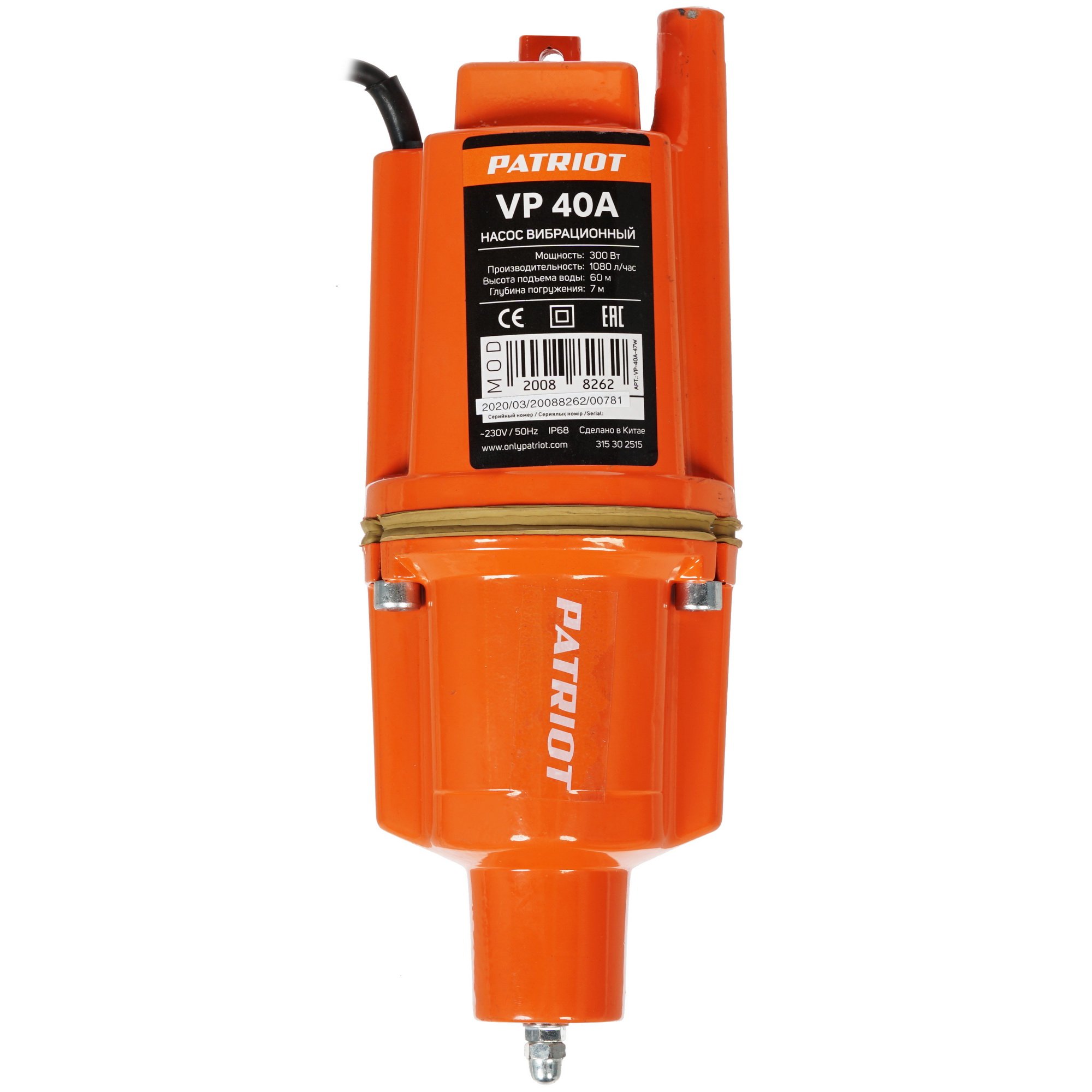 Погружной насос Patriot VP 40А работает по вибрационному принципу и имеет расположенное снизу отверстие для забора воды, гарантируя подъем чистой воды из скважины, колодца или резервуара. Электроприбор в оранжевом корпусе снабжается электродвигателем мощностью 300 Вт и демонстрирует производительность на уровне 18 л/мин при наибольшей глубине забора воды 7 метров. Максимальная высота подъема воды составляет у данной модели 60 метров.