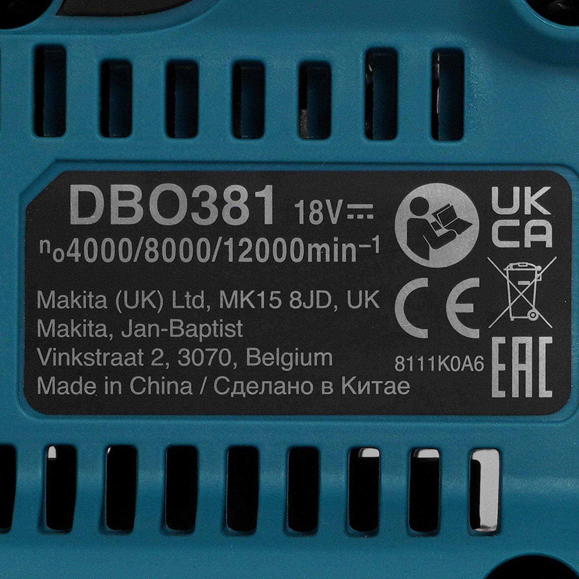 Аккумуляторная вибрационная шлифовальная машина Makita DBO381ZU. Шлифовальная машина с регулируемой скоростью и возможностью вертикальной работы. Регулировка скорости 3 положения для более универсальной работы. Легкий вес и эргономика подходят для вертикальных работ. Низкая скорость для очень тонкой шлифовки. Простая смена бумаги благодаря большим зажимам. Съемная передняя ручка.