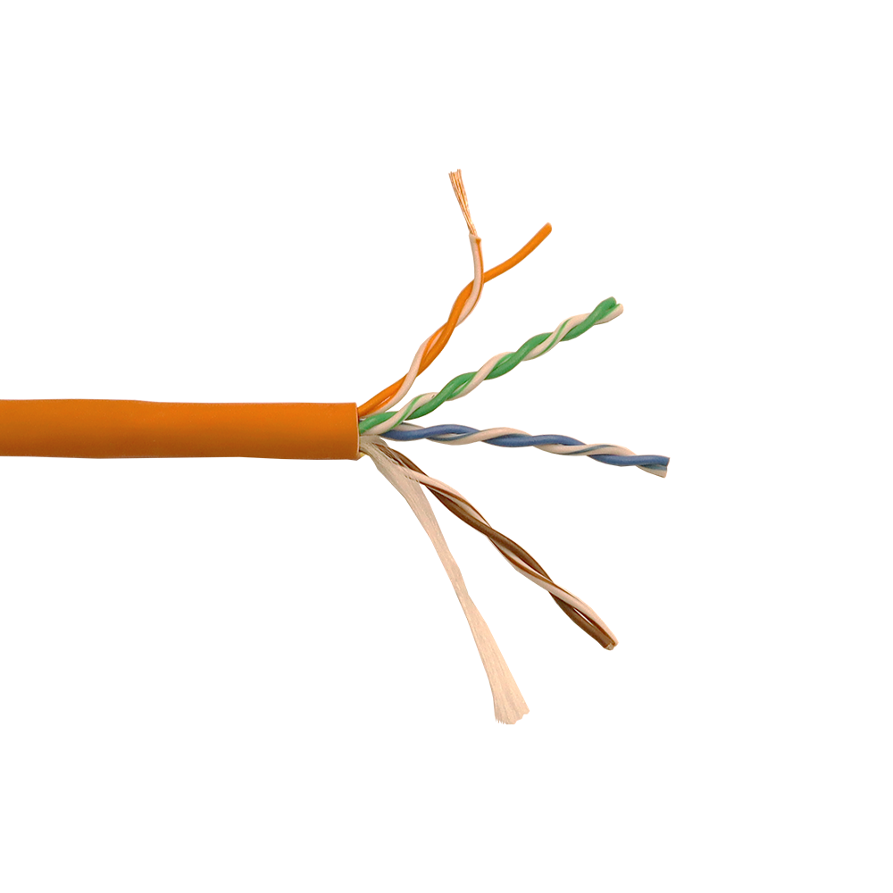 Два проводника, скрученных со специально подобранным шагом, составляют одну витую пару. Четыре витых пары заключены в общую оболочку из LSZH (низкодымящая, не содержит галогенов).