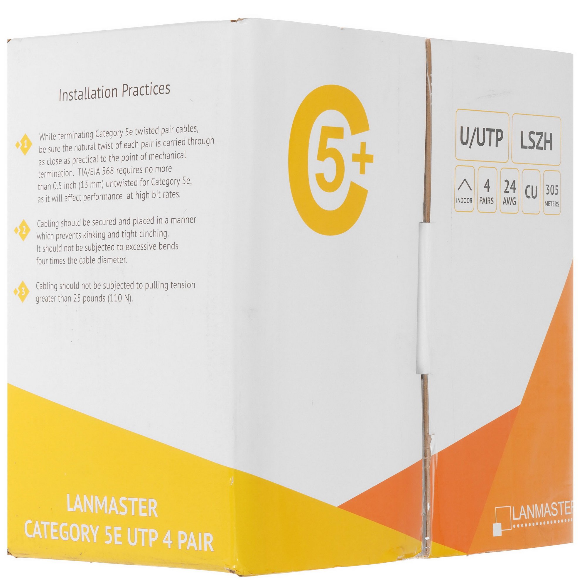 Кабель Lanmaster патч-кордовый UTP, 4x2, кат 5E, 350Mhz, LSZH, оранжевый, 305 м