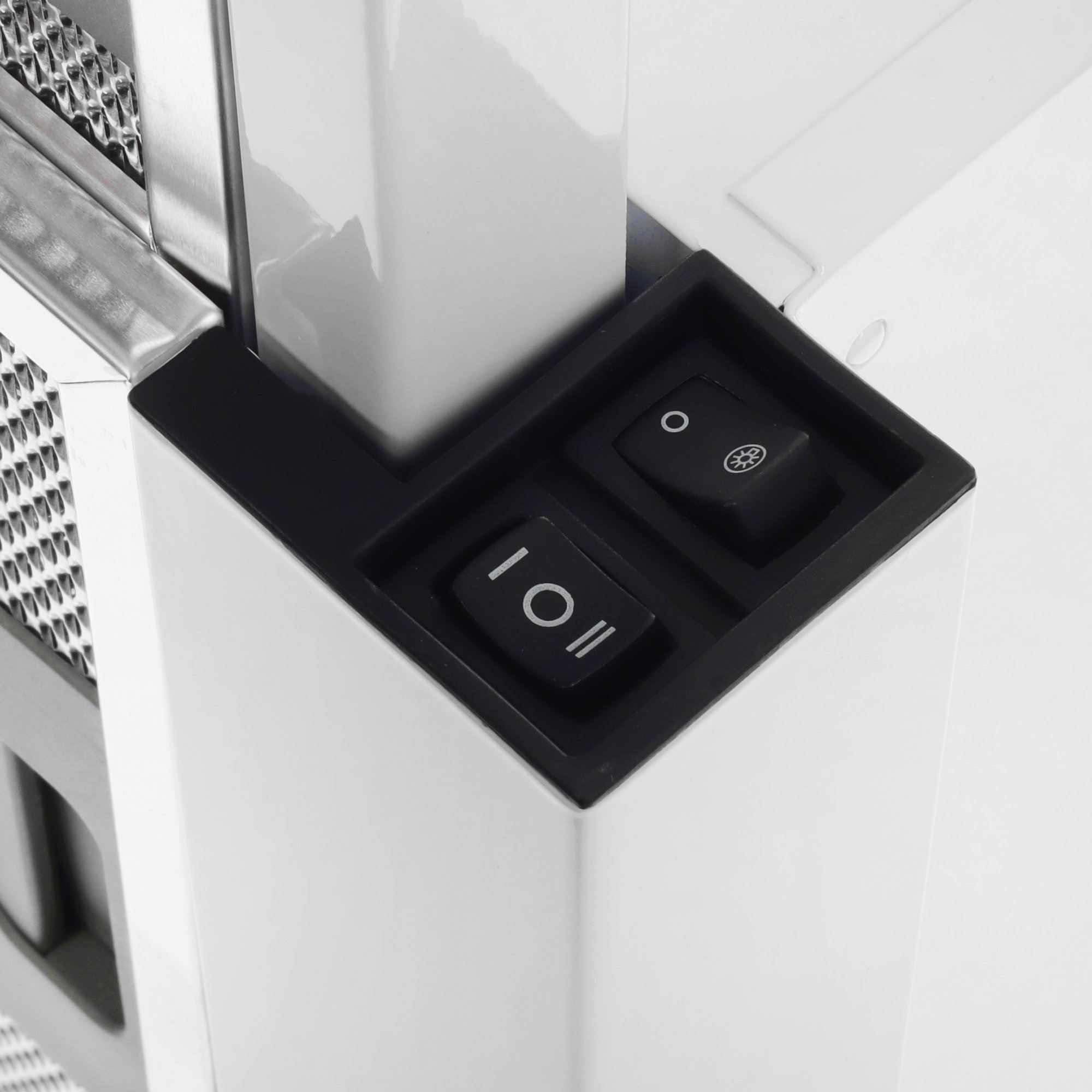 Вытяжка телескопическая MBS ARALIA 150 GLASS в металлическом корпусе белого цвета поддерживает режим циркуляции, который очищает воздух от неприятных запахов. Функция «Отвод» удаляет копоть. Телескопическая конструкция позволяет установить модель в навесной шкаф и выдвинуть во время использования.