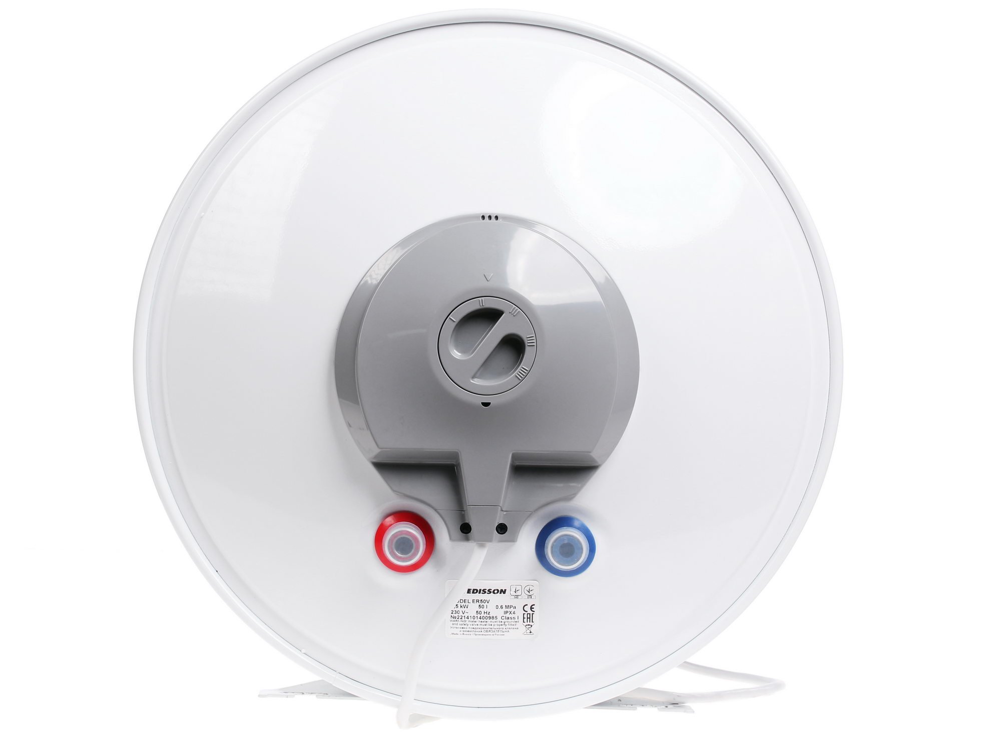 Для защиты бака водонагревателя от коррозии применяется анод из магния. Настенный монтаж Edisson ER 50V осуществляется с помощью креплений на задней стенке корпуса, при этом установка аппарата весом 18 кг осуществляется вертикально, а подводка - нижняя.