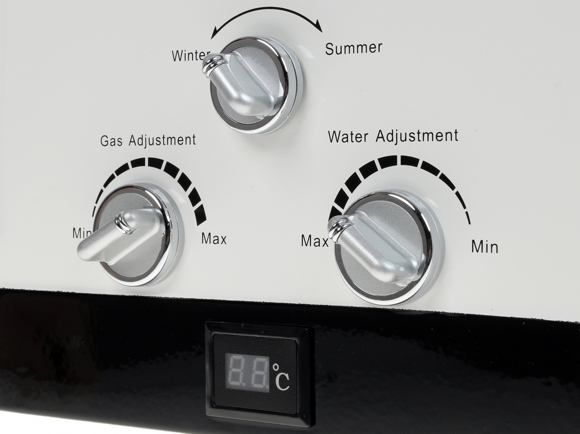 Номинальная мощность представленного прибора составляет 20 кВт. Водонагреватель получил механическое управление и электронный розжиг. Модель также оснащена термометром для воды и дисплеем для отображения. Отдельно стоит отметить высокий уровень безопасности устройства, обеспеченный применением в его конструкции опций газ-контроля, защиты от перегрева, ограничения температуры нагрева.