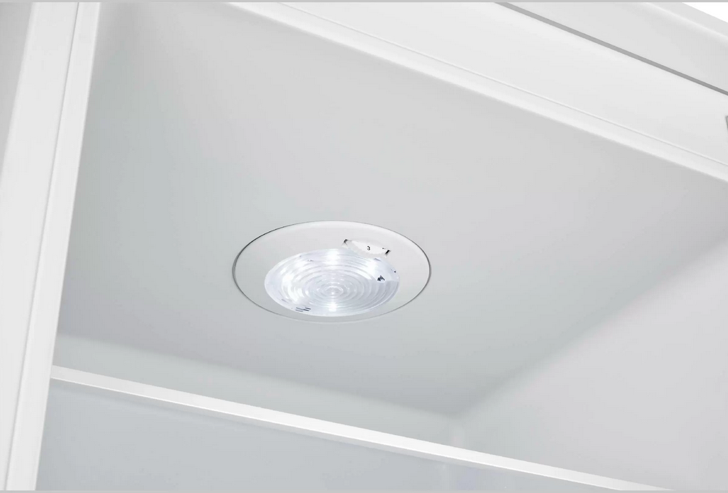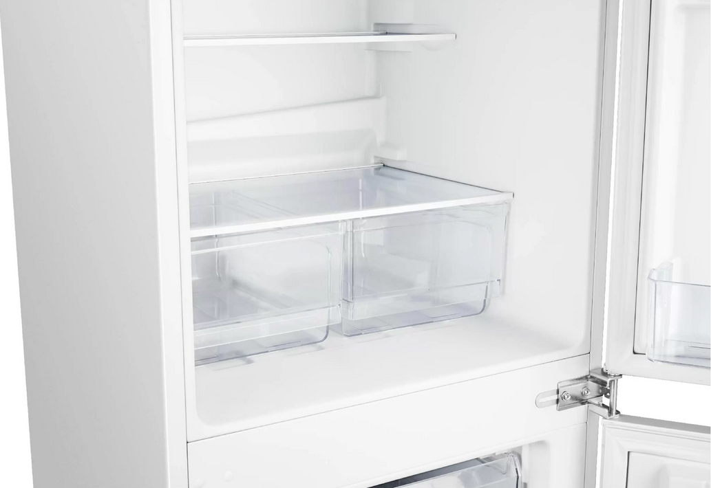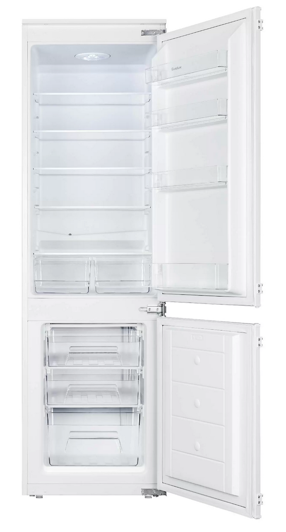 Встраиваемый холодильник Evelux FI 2200 объемом 242 л распределен между двумя камерами. Гибкость установки холодильника обеспечивает возможность перевешивания дверей. В течение 11 ч аппарат способен сохранять холод при отключении электроэнергии.