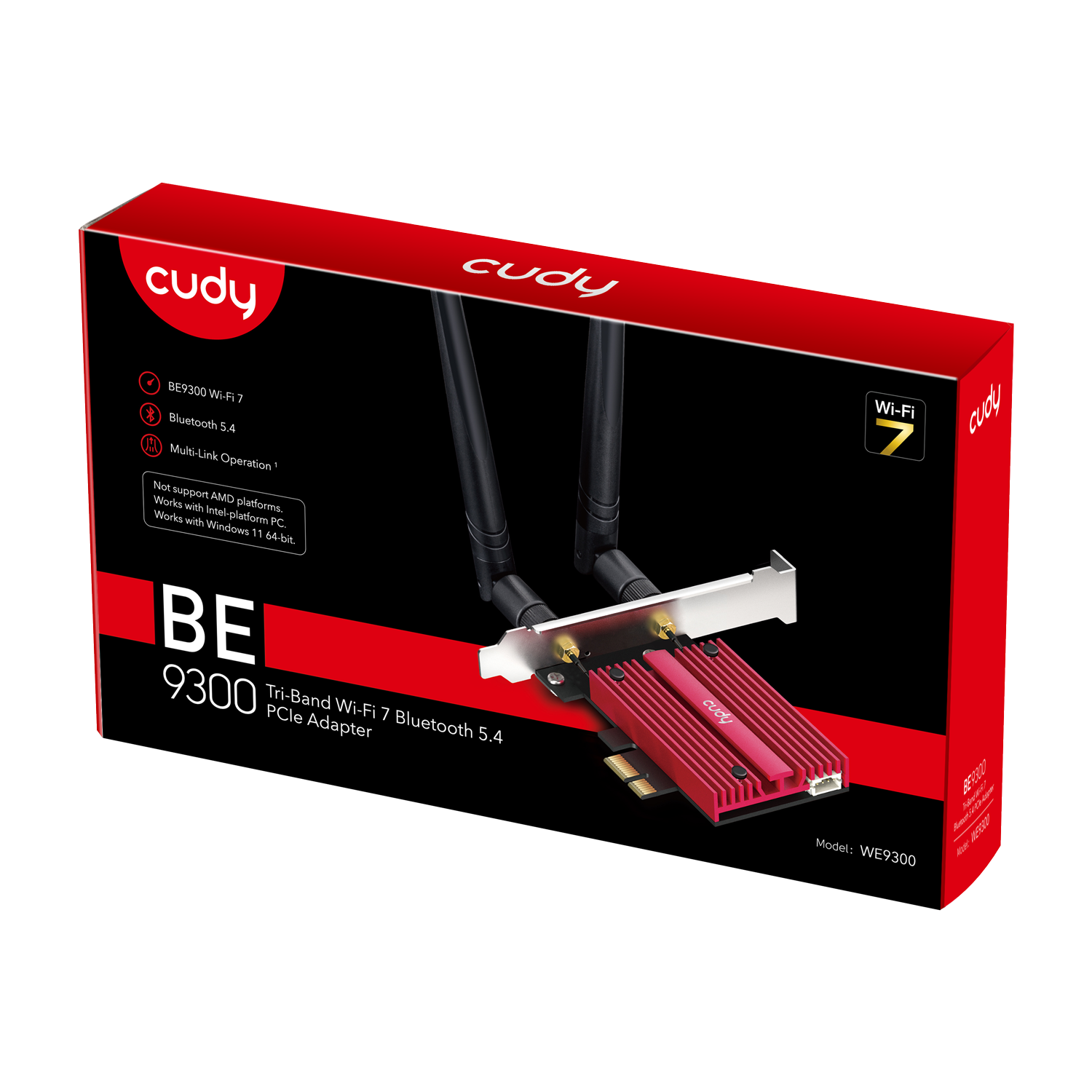 Адаптер PCI-E с поддержкой Wi-Fi 7 WE9300 и Bluetooth 5.4 использует модуль BE200 от компании Intel, благодаря чему он позволит создать сеть Wi-Fi на компьютерах Intel с операционной системой Windows 11. Возможность обмена данными по двум диапазонам одновременно (2,4 ГГц + 5 ГГц, 2,4 ГГц + 6 ГГц или 5 ГГц + 6 ГГц) за счёт технологии MLO обеспечивает стабильное мультигигабитное подключение. Для работы MLO эта технология также должна поддерживаться роутером и компьютером. Технология Bluetooth 5.4 гарантирует минимальную задержку, повышенную стабильность и пониженное энергопотребление подключенных устройств, будь то клавиатуры, мыши или наушники, работающие по технологии Bluetooth. Адаптер без труда устанавливается как в стандартных, так и в малогабаритных системных блоках. Для оптимального сигнала рекомендуется установить антенны в вертикальное положение и направить их в сторону роутера. Для питания адаптера и работы Wi-Fi на материнской плате должен быть свободный слот PCI-E (x1, x4, x8 или x16). Для работы Bluetooth на материнской плате должен быть свободный 9-контактный разъём USB.