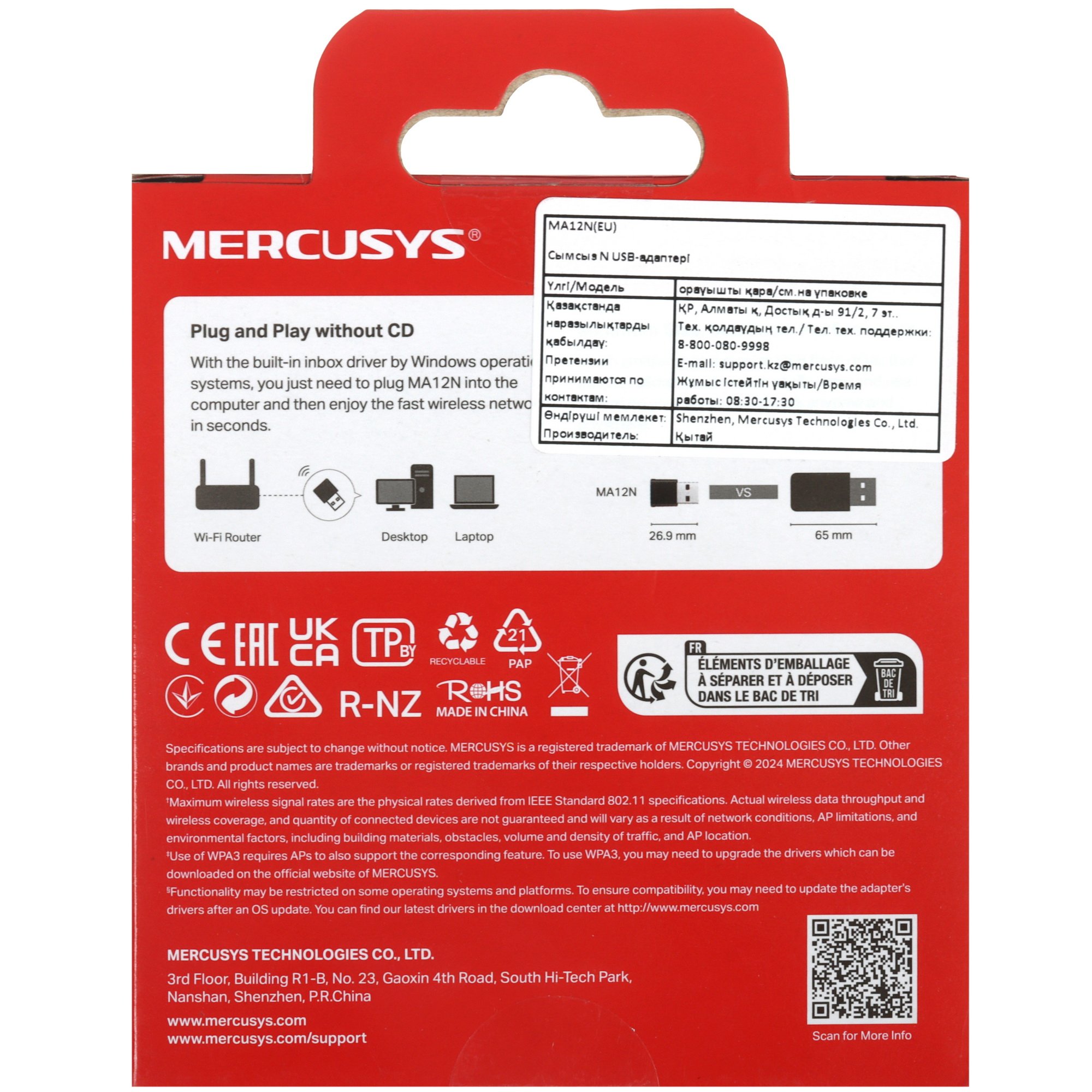 Сверхкомпактный USB-адаптер Mercusys MA12N с поддержкой Wi-Fi N300