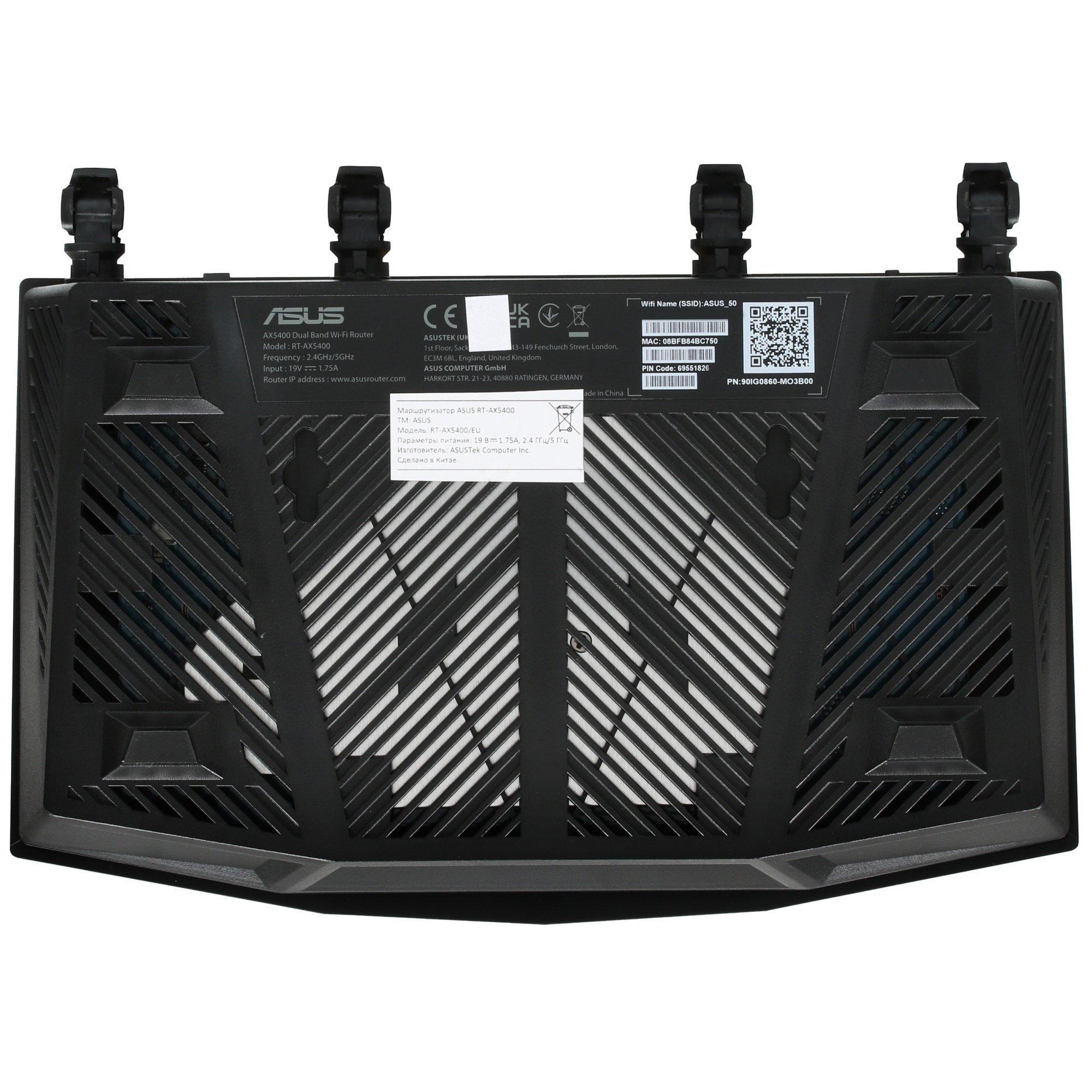 Wi-Fi роутер ASUS RT-AX5400 использует оба диапазона Wi-Fi. Скорость на частоте 5 ГГц ограничена 4804 Мбит/с. Соответствующий показатель для диапазона 2.4 ГГц равен 574 Мбит/с. Проводное подключение организуется посредством четырех гигабитных портов.
