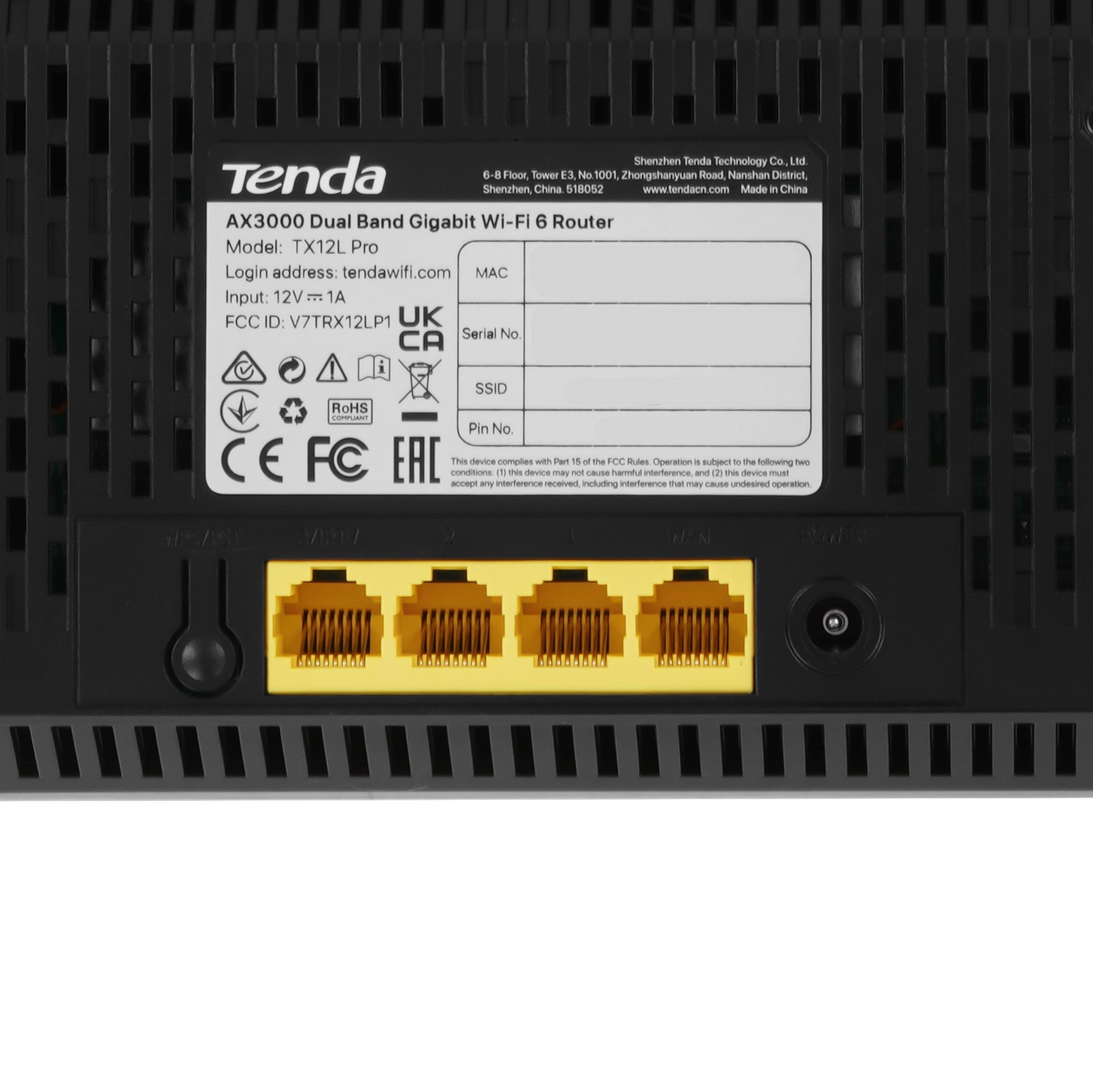 Маршрутизатор Wi-Fi Tenda TX12L PRO двухдиапазонный стандарта AX3000, 5 внешних антенн 6dBi, 1-port 10/100/1000Mbps WAN, 3-ports 10/100/1000Mbps LAN