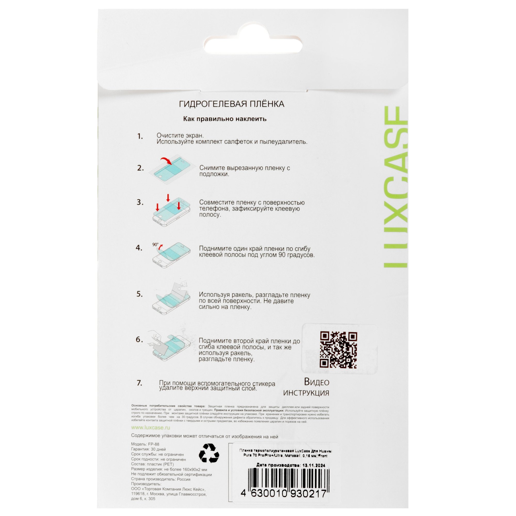 LuxCase для HUAWEI Pura 70 Pro/ 70 Ultra/ 70 Pro+ изготовлена из TPU. Пленка не искажает цветопередачу и не ухудшает чувствительность сенсора. Изделие толщиной 160 мкм плотно прилегает к дисплею без отслаивания по краям. С гладкой поверхности легко удалять следы от брызг и отпечатков пальцев без разводов.