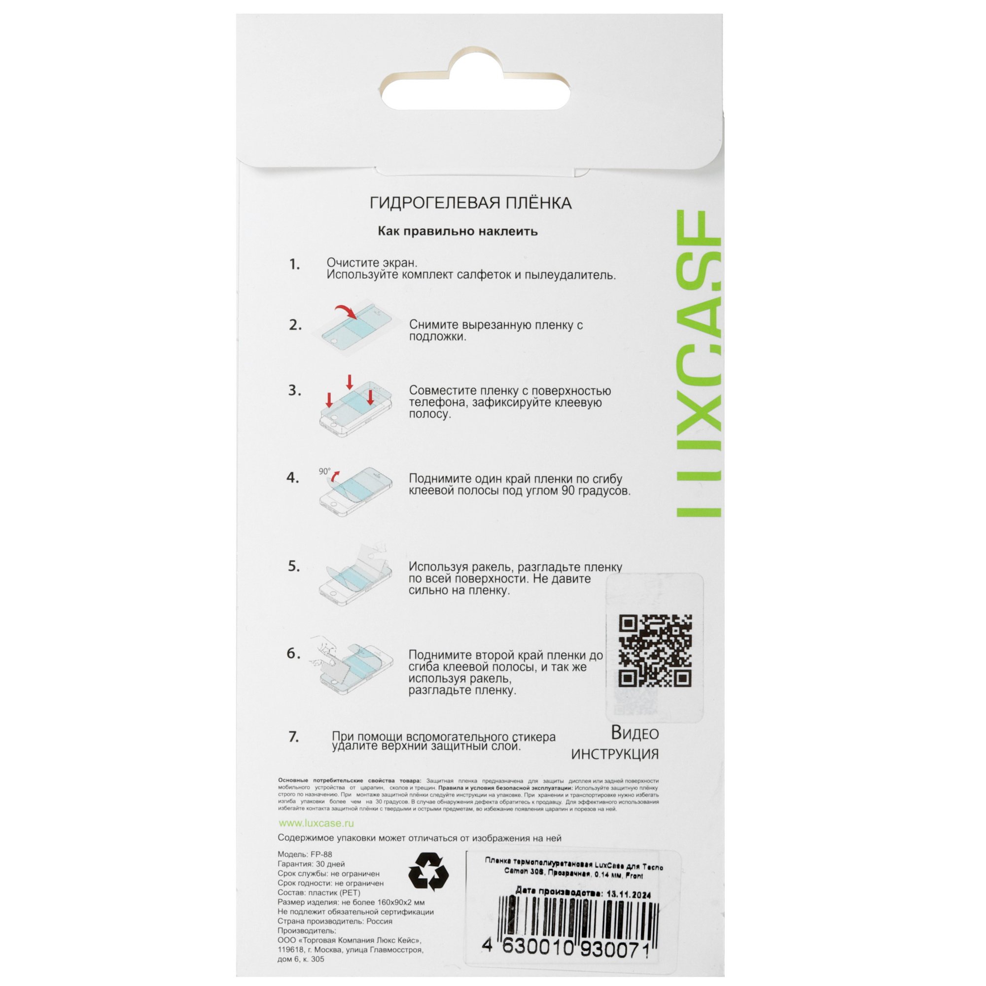 LuxCase для Tecno CAMON 30S изготовлена из TPU. Пленка не искажает цветопередачу и не ухудшает чувствительность сенсора. Изделие толщиной 140 мкм плотно прилегает к дисплею без отслаивания по краям. С гладкой поверхности пленки легко удалять следы от брызг и отпечатков пальцев без разводов.