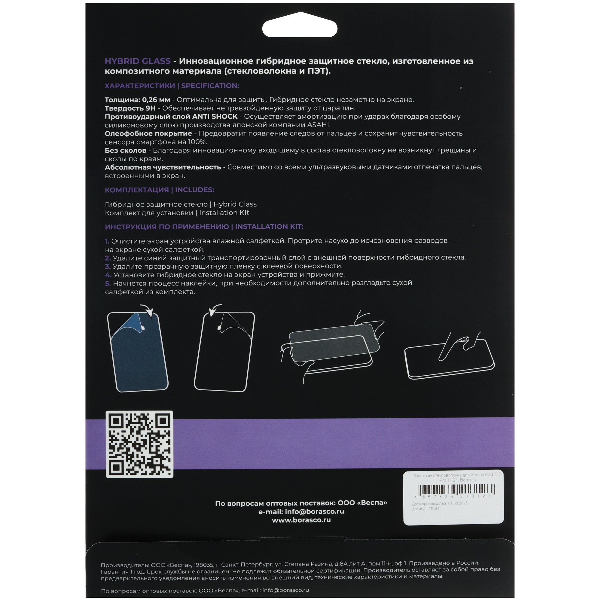 Защитное гибридное стекло BoraSCO для Xiaomi Pad 7/ 7 Pro соответствует дизайну дисплея с диагональю 11.2 дюймов. Защитное средство отличается полной прозрачностью и не искажает изображение на экране мобильного устройства. Оно приклеивается на поверхность предварительно очищенного от жировых следов и пыли экрана за счет клеевого слоя, которым полностью покрыта одна из сторон аксессуара. Средства для очистки дисплея при приклеивании входят в комплект со стеклом.
