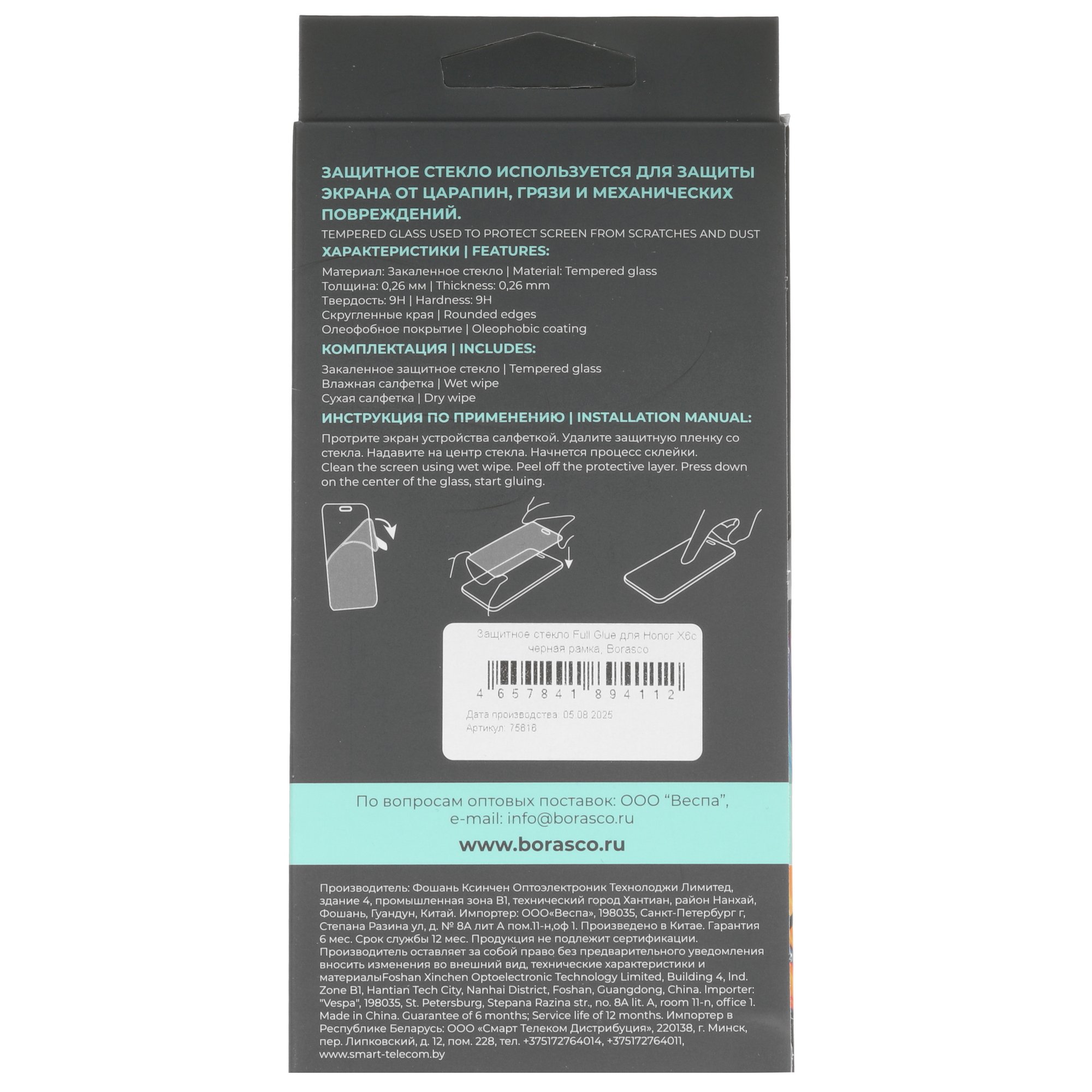 Благодаря типу 2.5D BoraSCO для экрана HONOR X6c с легким скруглением краев полностью закрывает поверхность дисплея. Черная рамка маскирует границы и тем самым делает покрытие менее заметным. Клей по всей поверхности упрощает удаление пузырьков воздуха для плотного прилегания и защиты от отклеивания аксессуара. Стекло идет в комплекте с сухой и влажной салфетками для очистки и подготовки дисплея к установке изделия.