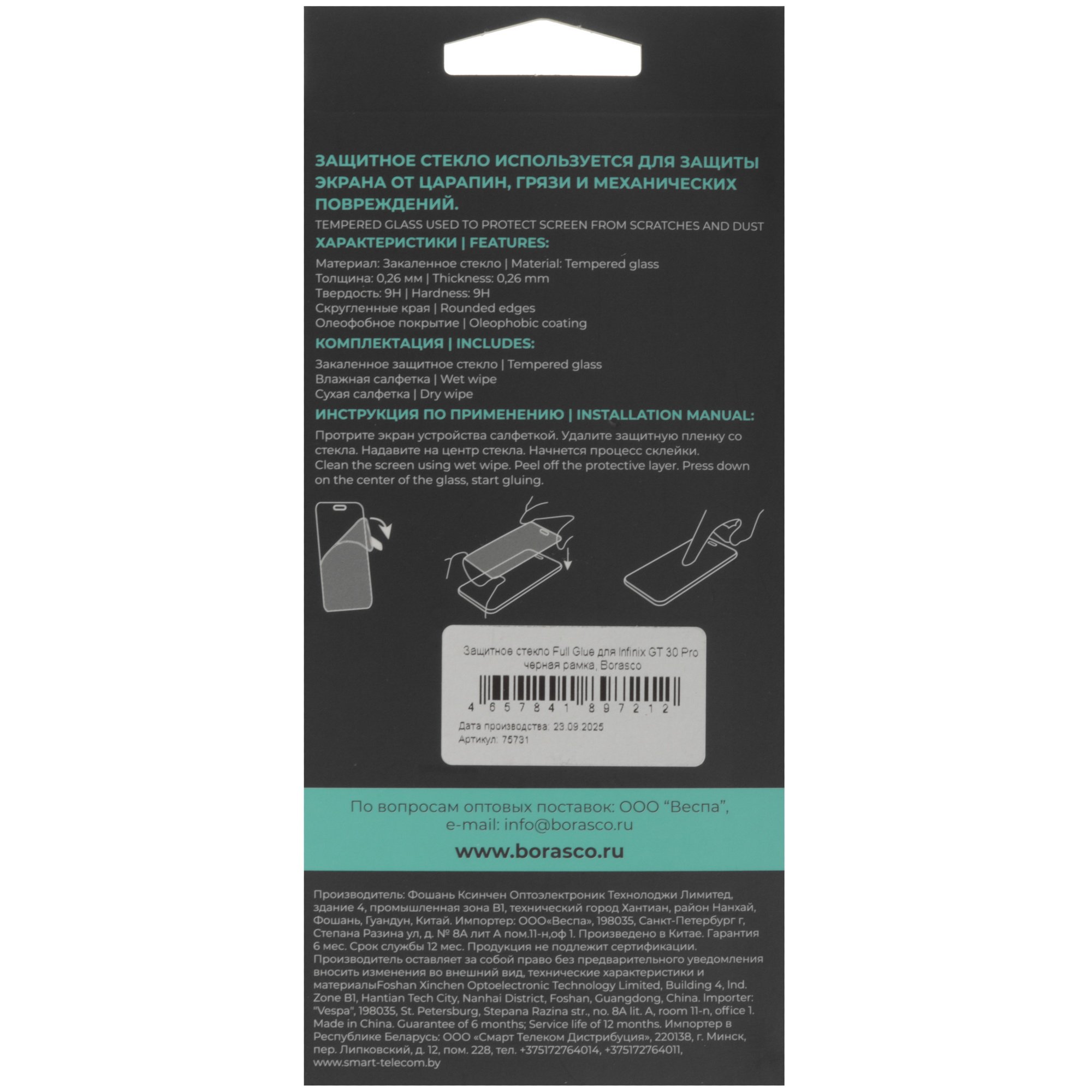 Благодаря типу 2.5D BoraSCO для экрана Infinix GT 30 Pro с легким скруглением краев полностью закрывает поверхность дисплея. Черная рамка маскирует границы и тем самым делает покрытие менее заметным. Стекло идет в комплекте с сухой и влажной салфетками для очистки и подготовки дисплея к установке изделия.