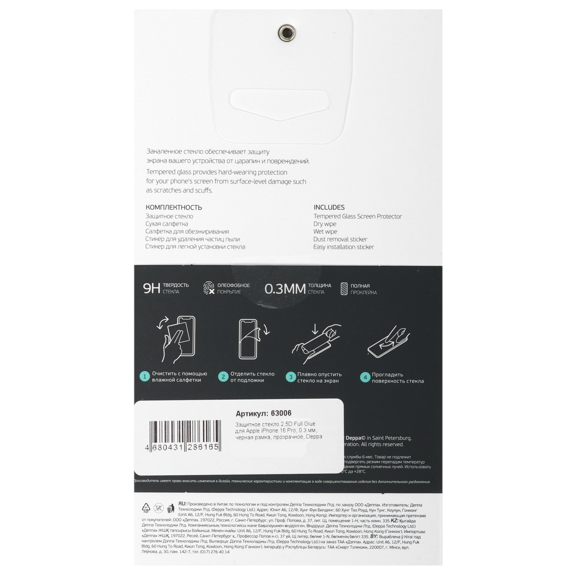 Благодаря гладкому олеофобному покрытию с поверхности DEPPA для Apple iPhone 16 Pro легко удалять брызги и отпечатки пальцев. Изделие плотно прилегает к экрану без появления пузырьков воздуха и отслаивания по краям. После снятия покрытие не оставляет липких следов.