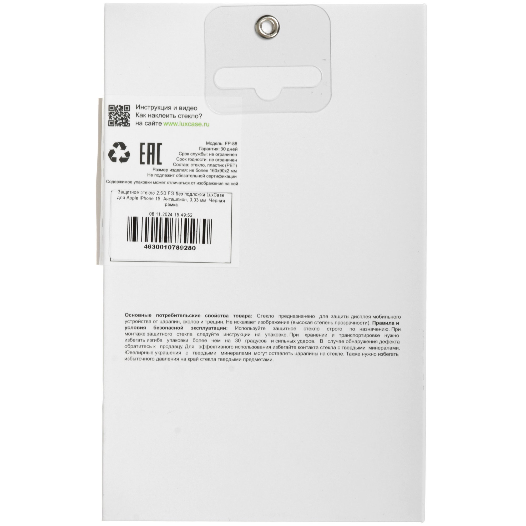 Защитное стекло LuxCase для экрана Apple iPhone 15 с черной рамкой подходит для устройств с диагональю 6.1". Набор состоит из одного изделия с салфетками для очистки дисплея и даст-стикером. Стекло оберегает экран от появления царапин, сколов и прочих повреждений. Гладкое олеофобное покрытие позволяет легко удалить с поверхности брызги и отпечатки пальцев.