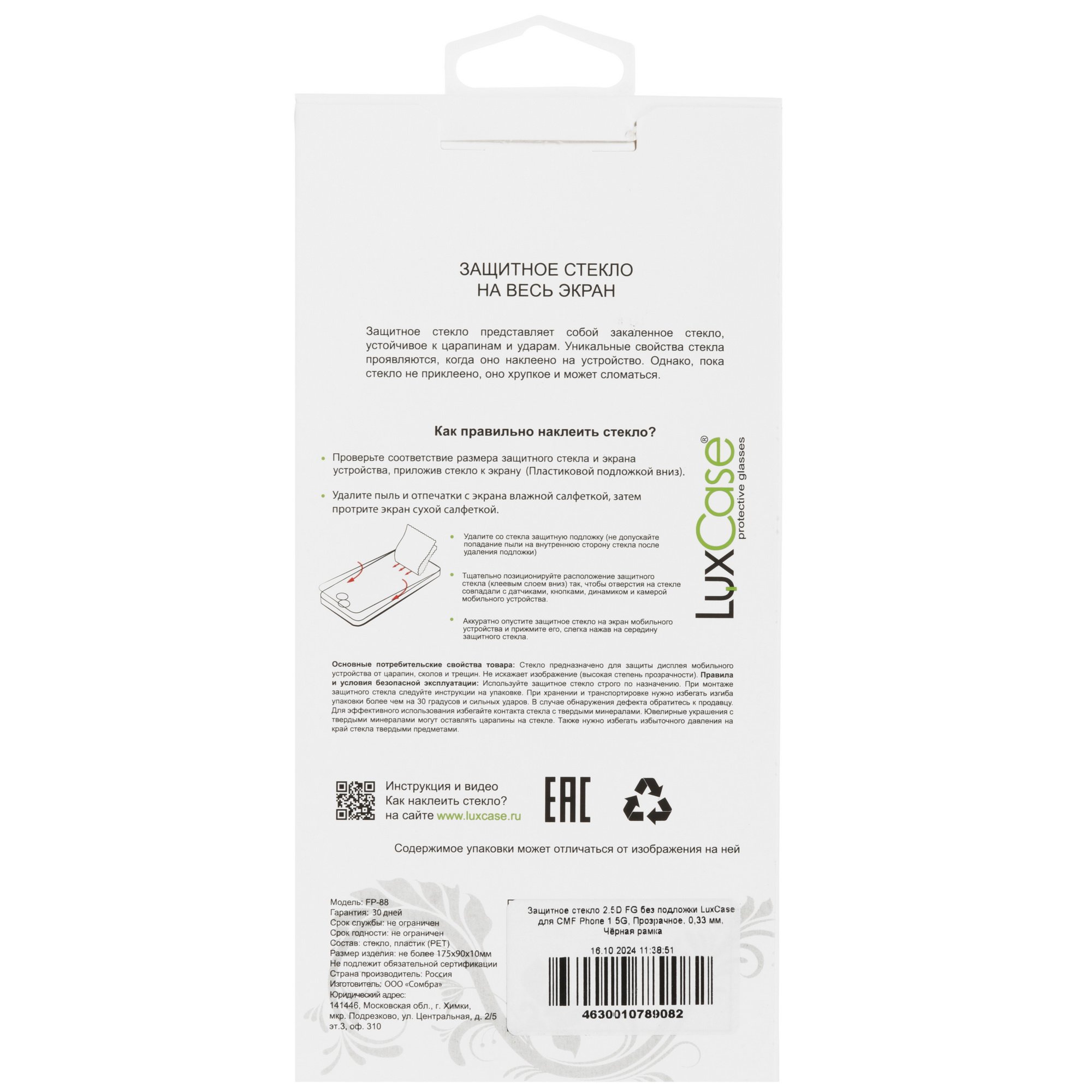 Защитное стекло LuxCase для экрана CMF Phone 1 с черной рамкой подходит для устройств с диагональю 6.67". Набор состоит из одного изделия с салфетками для очистки дисплея и даст-стикером. Стекло оберегает экран от появления царапин, сколов и прочих повреждений. Гладкое олеофобное покрытие позволяет легко удалить с поверхности брызги и отпечатки пальцев.
