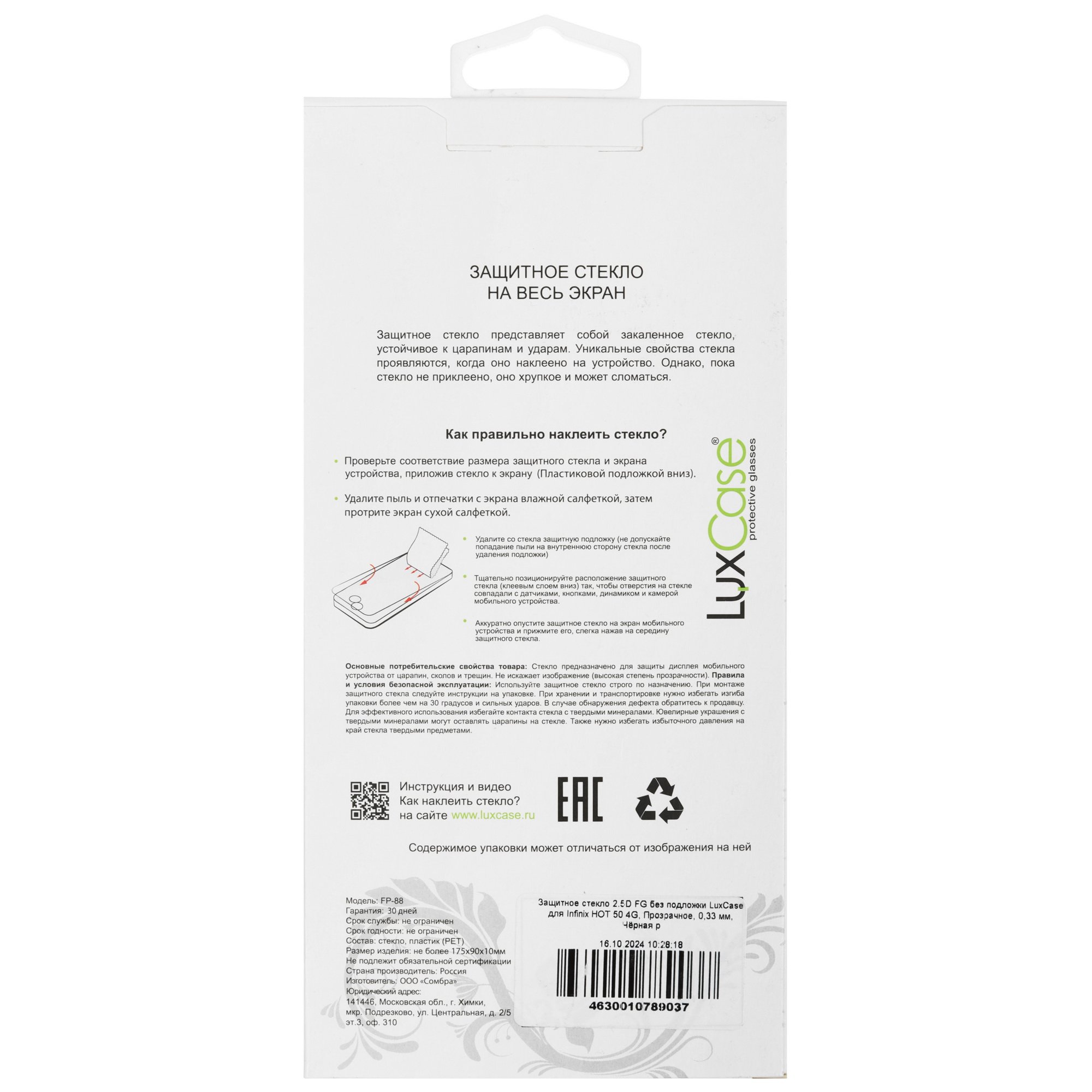 2.5D защитное стекло LuxCase для Infinix HOT 50 обладает черной рамкой и является олеофобным. Оно защищает экран смартфона от сколов, царапин, влаги и грязи. LuxCase для Infinix HOT 50 имеет сухую и влажную салфетки для протирки экрана перед нанесением защиты.