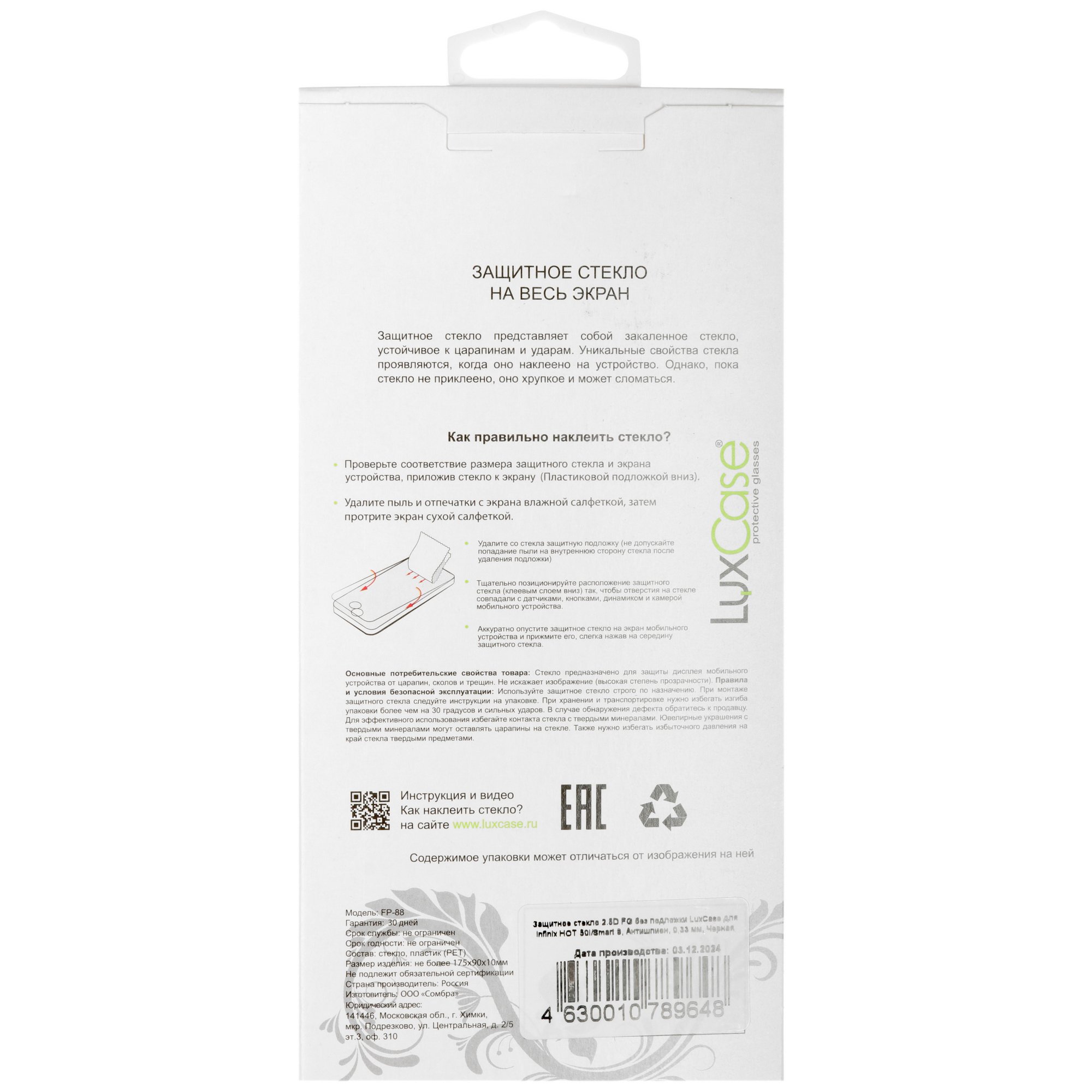 LuxCase для Infinix HOT 50i/ SMART 9 идет в комплекте с сухой и влажной салфетками для подготовки экрана. Даст-стикер помогает удерживать стекло с внешней стороны для точной установки. Изделие 2.5D со слегка закругленными краями и черной рамкой выглядит незаметно даже при отсутствии чехла на устройстве. Клеевая основа не дает стеклу отклеиваться по краям и не оставляет липких следов при снятии аксессуара.