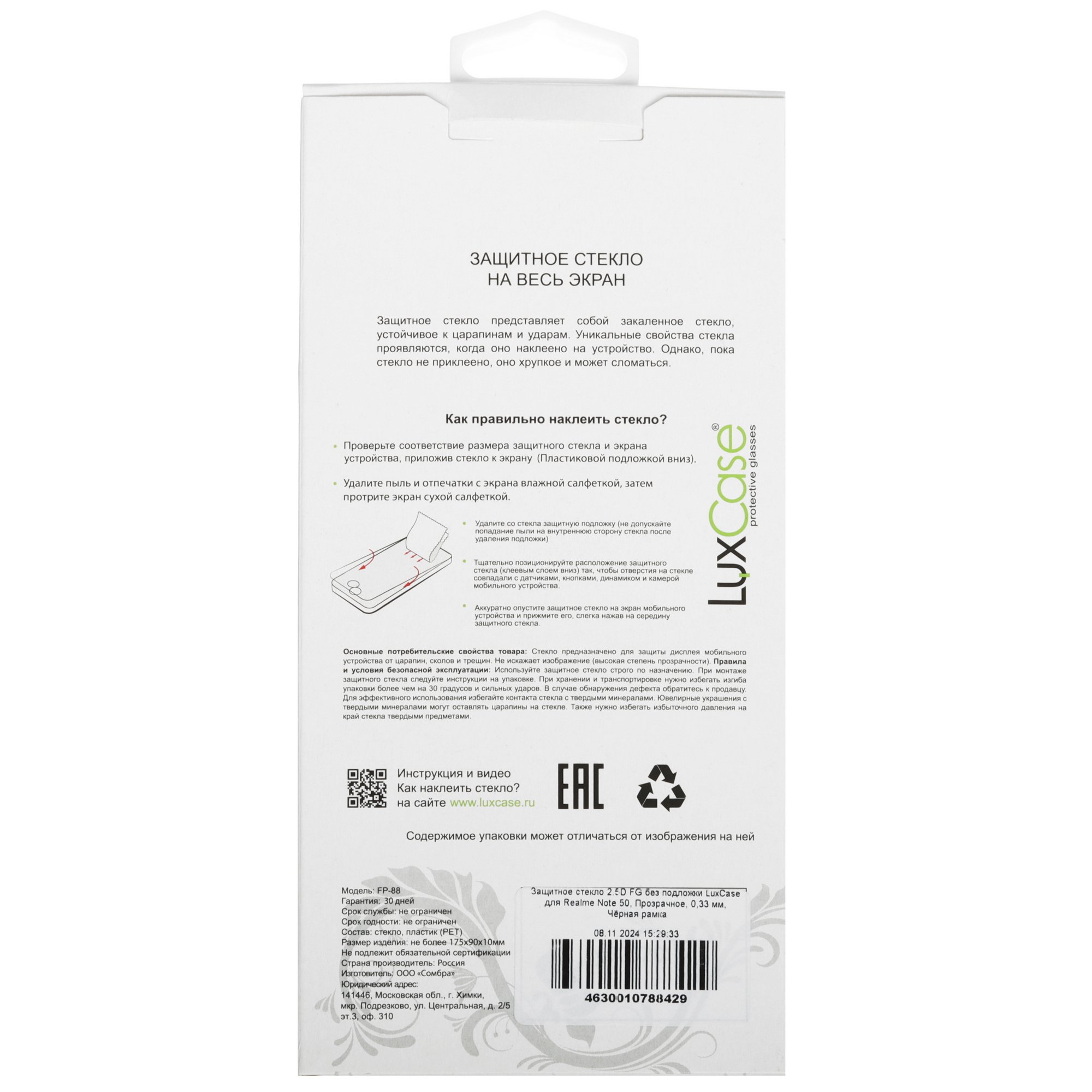 Защитное стекло LuxCase для экрана realme Note 50/ 60/ 60x/ Vivo Y04 типа 2.5D оснащено слегка скругленными краями. Черная рамка делает покрытие незаметным на оригинальном дисплее даже при отсутствии на устройстве отвлекающего внимание чехла. Гладкий олеофобный слой не дает загрязнениям въедаться в поверхность для простоты их удаления без следов и разводов.