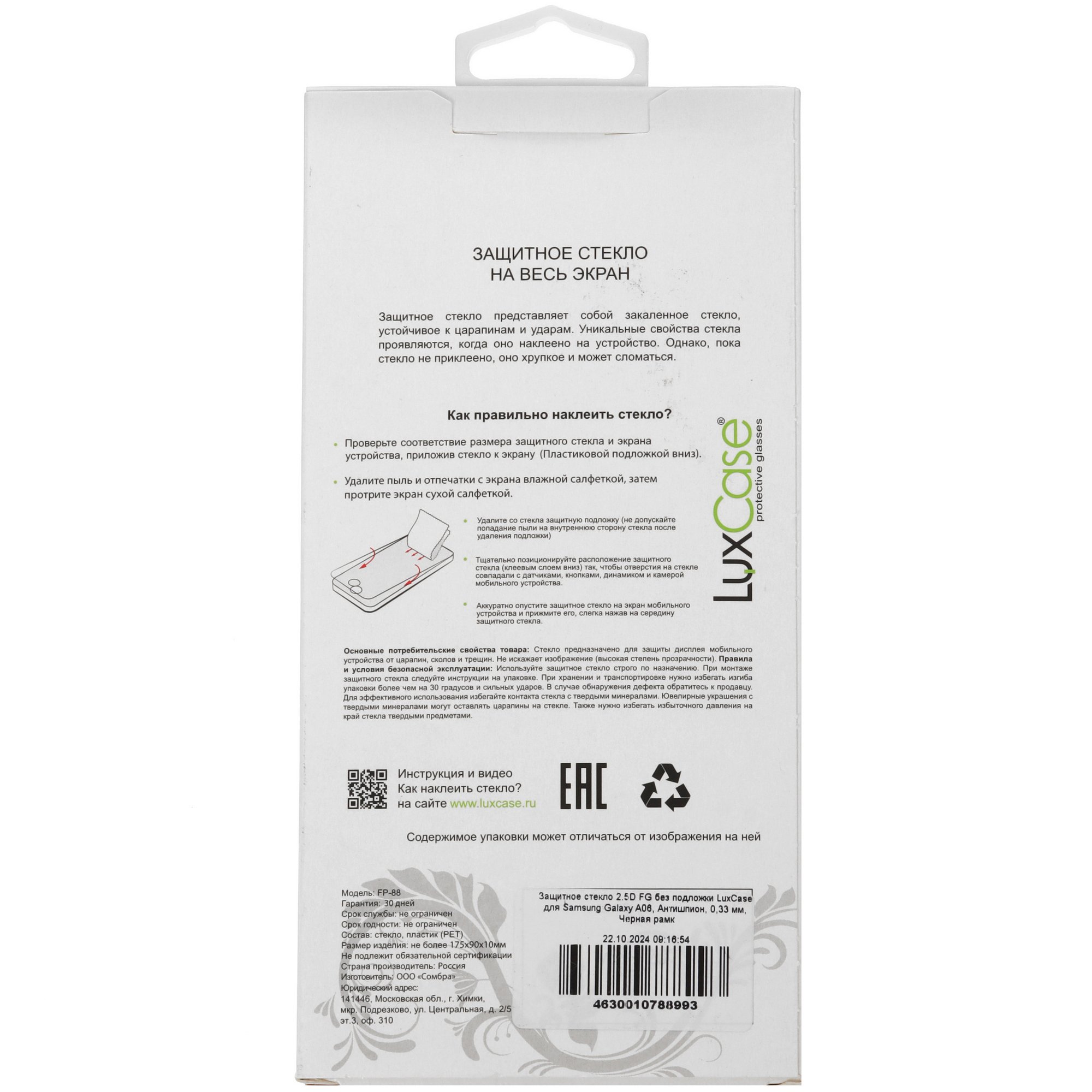 LuxCase для экрана Samsung Galaxy A06 с диагональю 6.7" дополнено покрытием «антишпион» для просмотра информации на экране только при взгляде под прямым углом. Это не дает окружающим людям на улице или в общественном транспорте подсмотреть вашу переписку или другие личные данные. Клеевой слой гарантирует плотное прилегание стекла и точную работу сенсора. В наборе есть салфетки для очистки и подготовки экрана к установке, даст-стикер для аккуратного удержания и точного приклеивания покрытия.