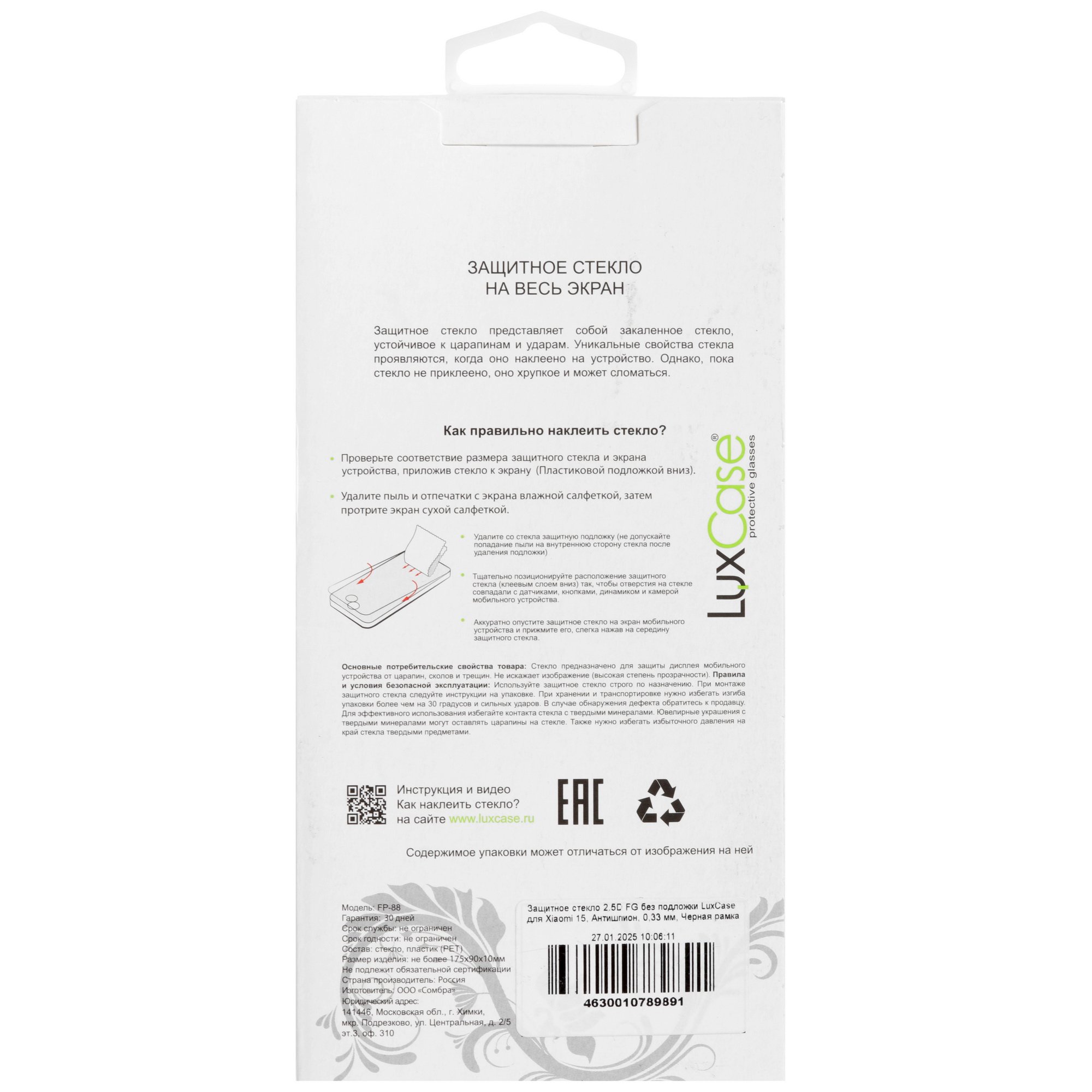 Стекло LuxCase для экрана смартфона Xiaomi 15 имеет олеофобное покрытие, которое убережет смартфон от бликов, попадания влаги и пыли, а также обеспечит устойчивость к царапинам и сколам. Цветная рамка черного цвета придает дисплею ухоженный, естественный вид и делает защитное стекло менее заметным. Дополнительно в комплекте прилагаются салфетки для очистки экрана и даст-стикер для удаления пыли.