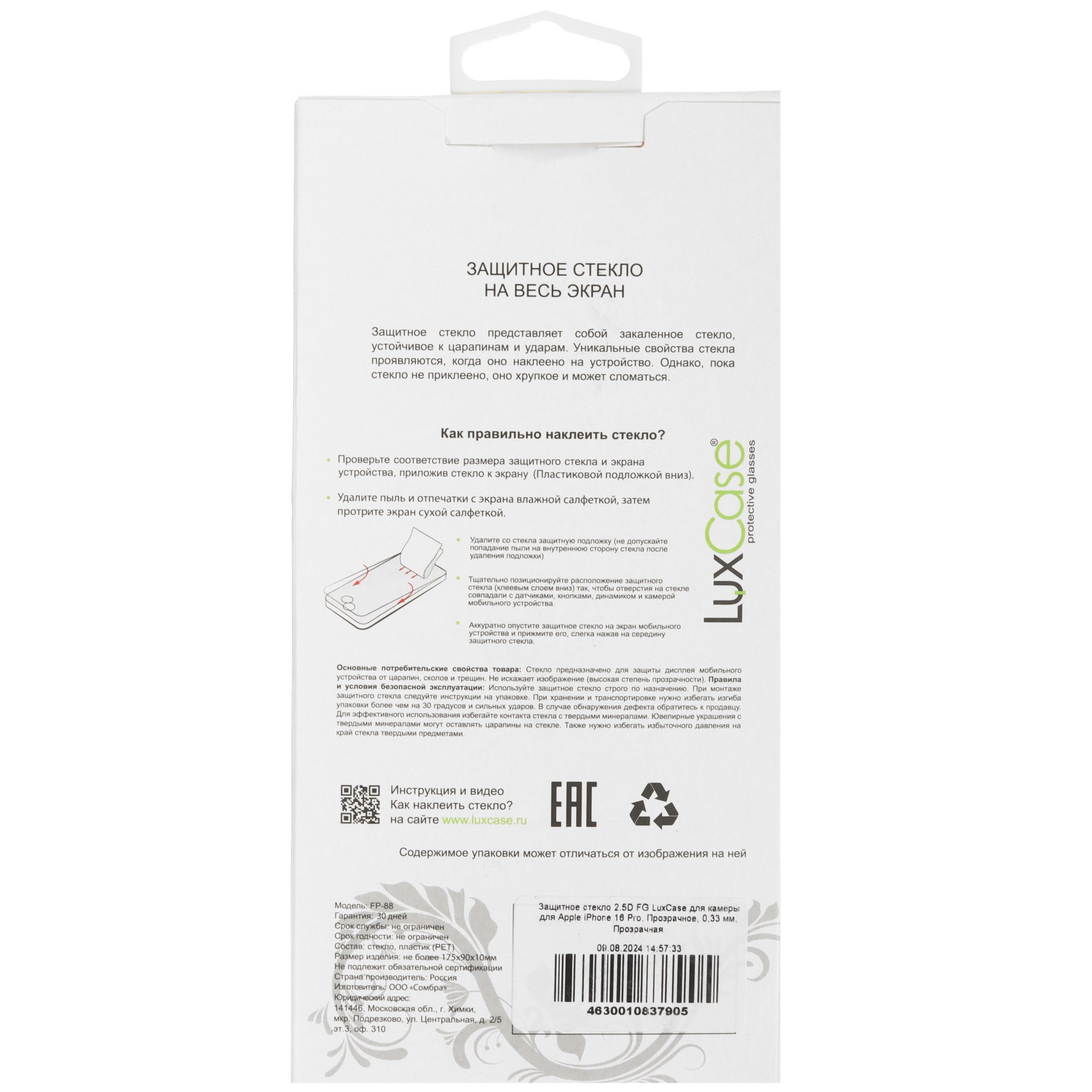 Защитное стекло LuxCase для камеры Apple iPhone 16 Pro оберегает объектив от потертостей, царапин, сколов и прочих повреждений. Гладкое олеофобное покрытие облегчает очистку от брызг, отпечатков пальцев и других загрязнений. Прозрачная поверхность не влияет на работу вспышки во время съемки и не искажает цветопередачу.