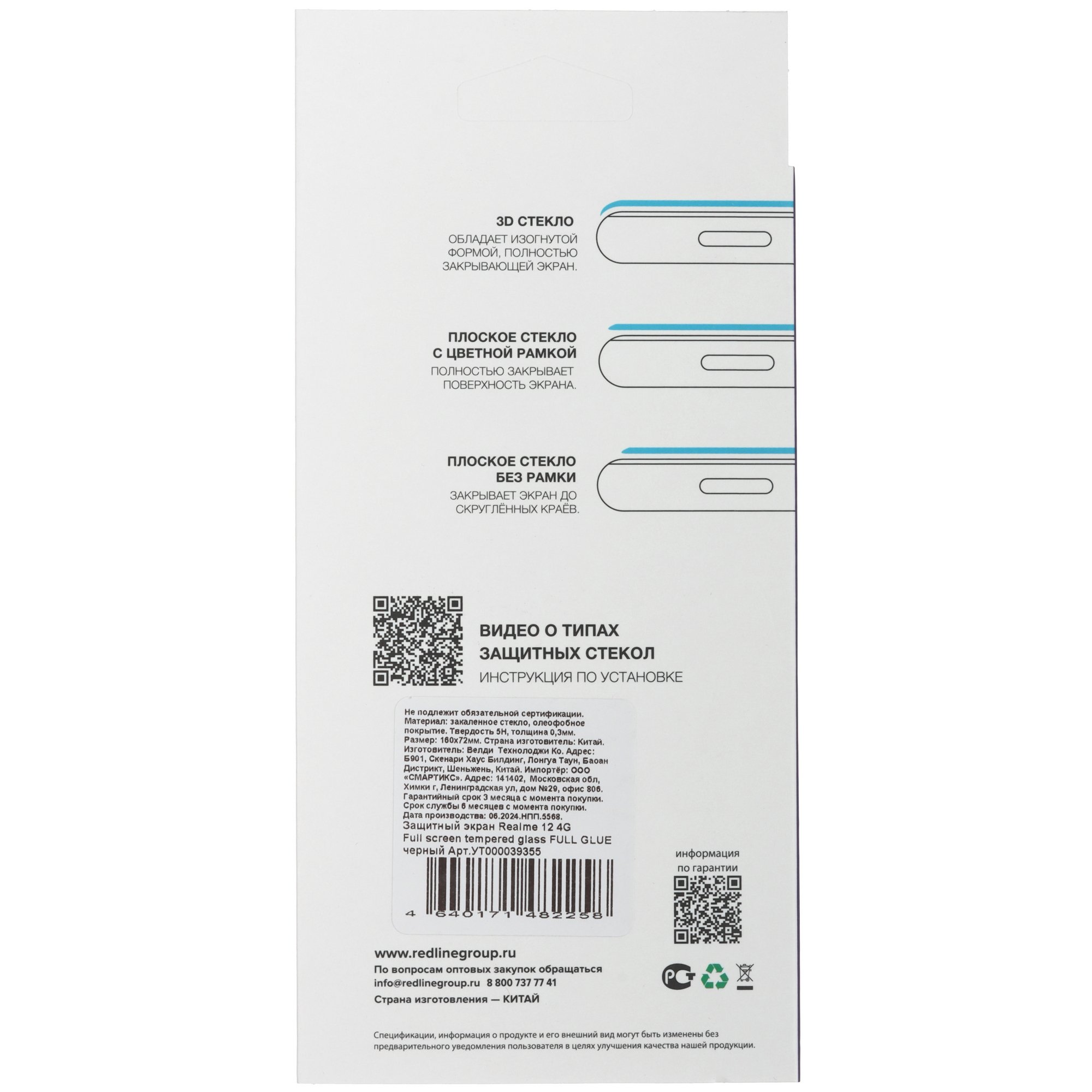 Защитное стекло для экрана Redline черный для Realme 12 4G 2.5D 1шт. (УТ000039355)